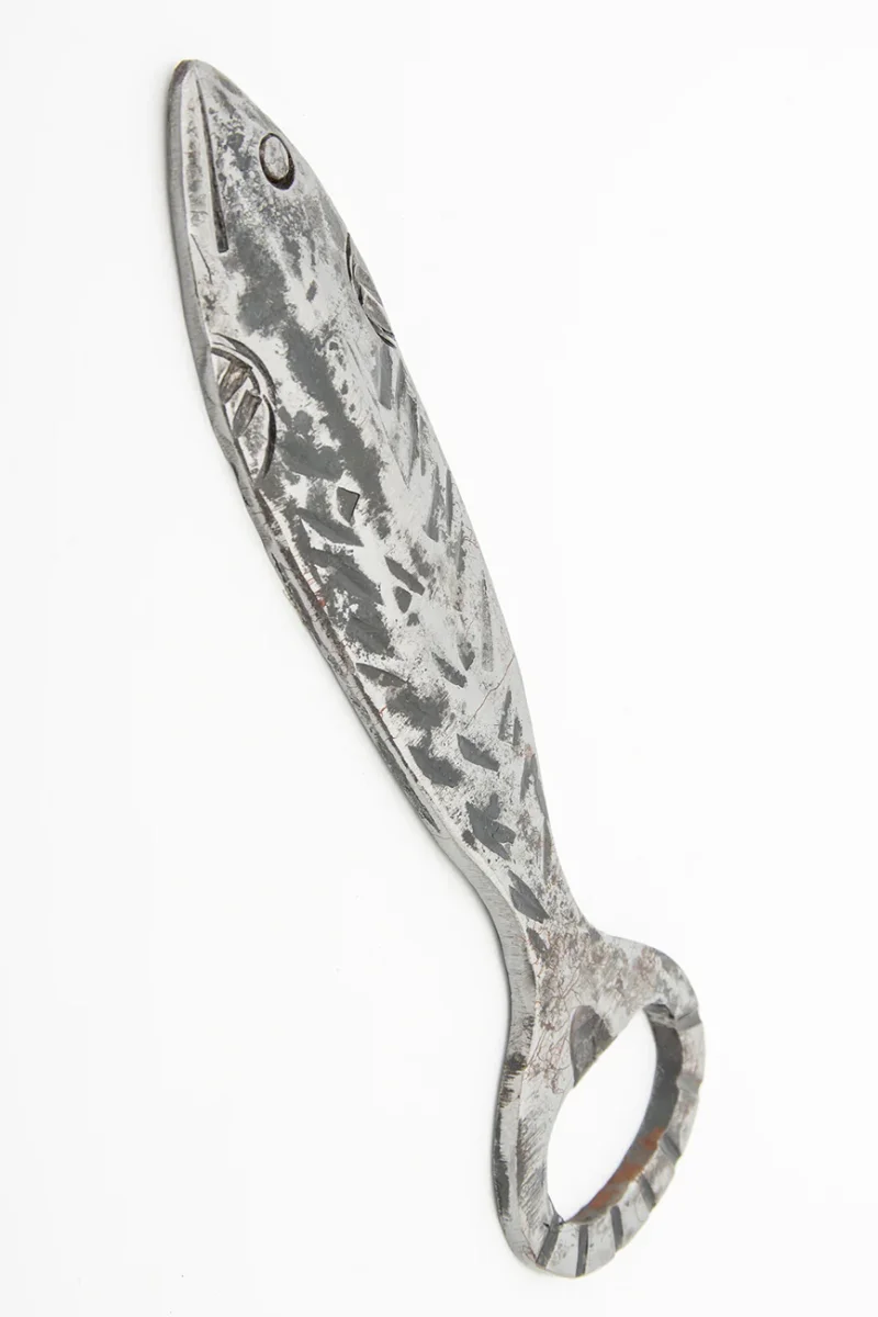 Abrebotellas de metal con forma de pez. Precioso complemento para la cocina.