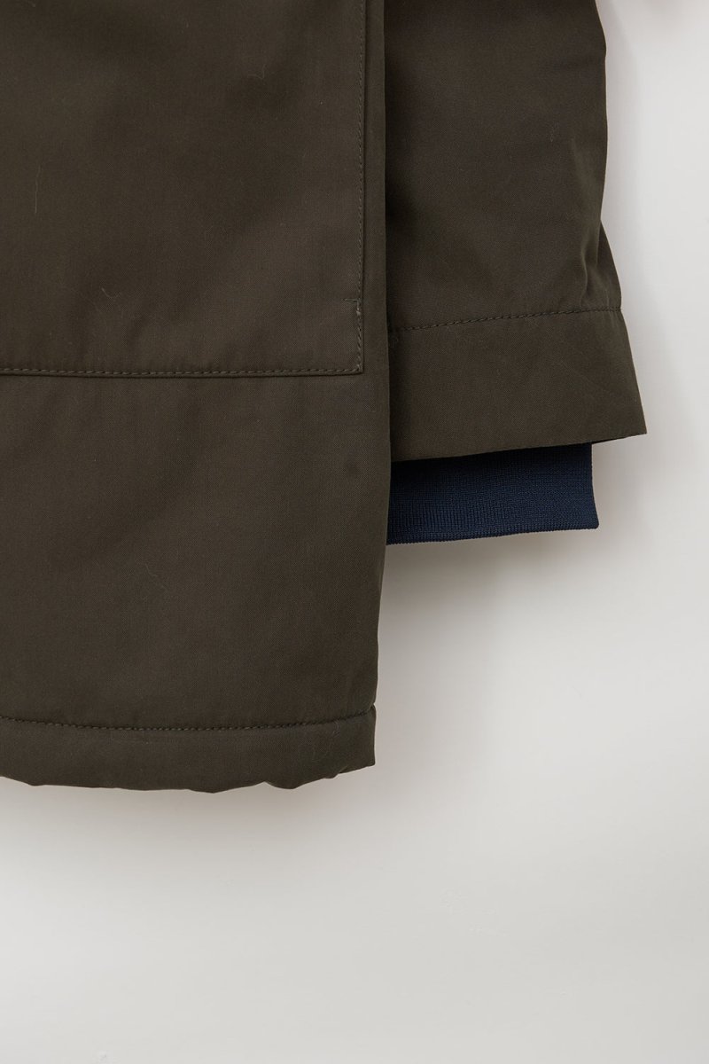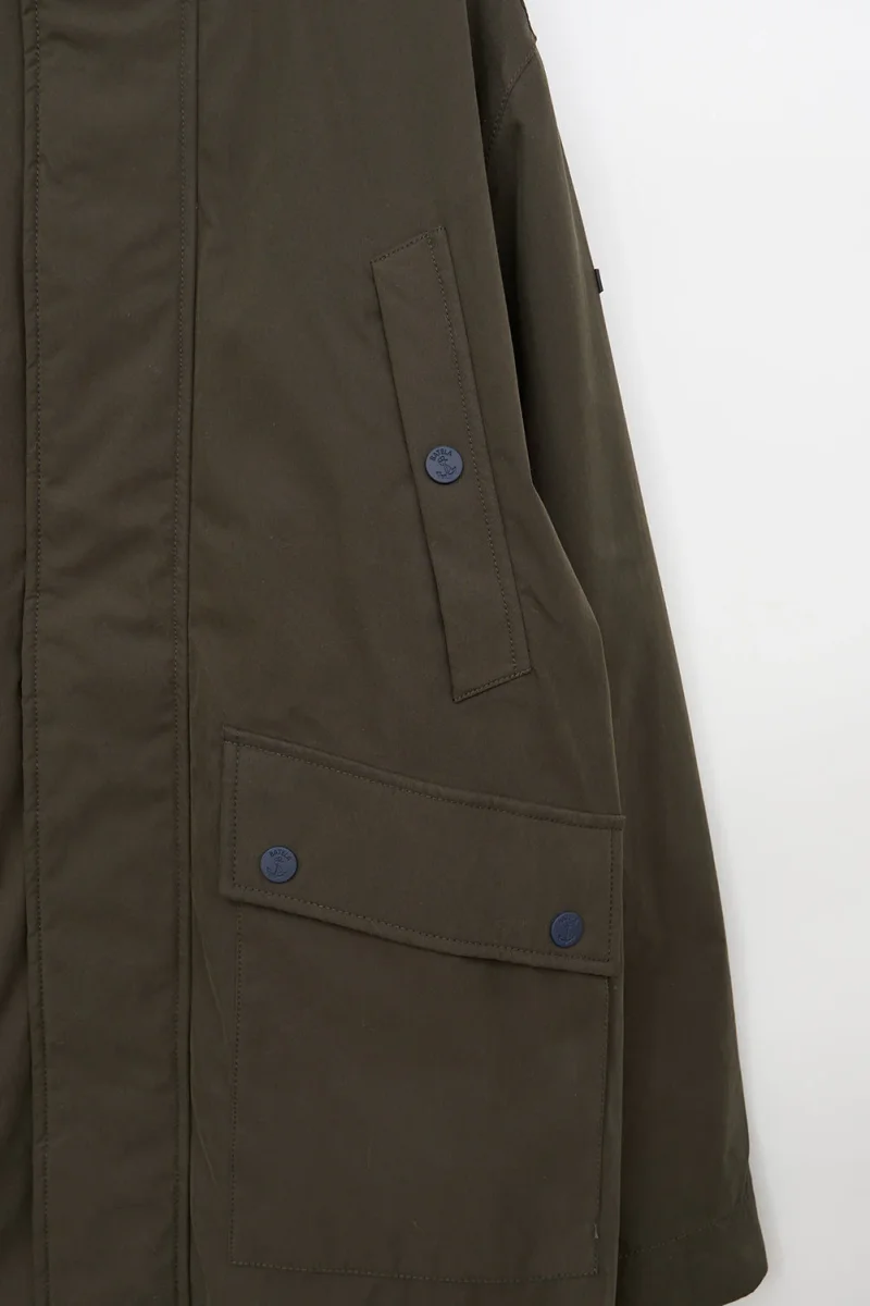 Abrigo de hombre en tejido 100% impermeable con capucha y forro interior de borreguito. Cierre frontal con cremallera de doble cursor, que se oculta con una tapeta cerrada con corchetes. Múltiples bolsillos. Dos bolsillos en el pecho con cierre de corchete, y doble bolsillo en cada costado, uno frontal con tapeta y cierre de corchete, […]
