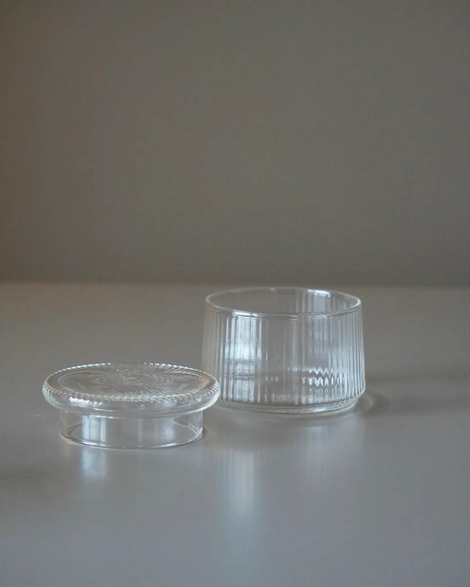 • Couvercles Coordonnés : Chaque pot est doté d’un couvercle en verre assorti, garantissant une esthétique épurée et uniforme sur vos étagères.