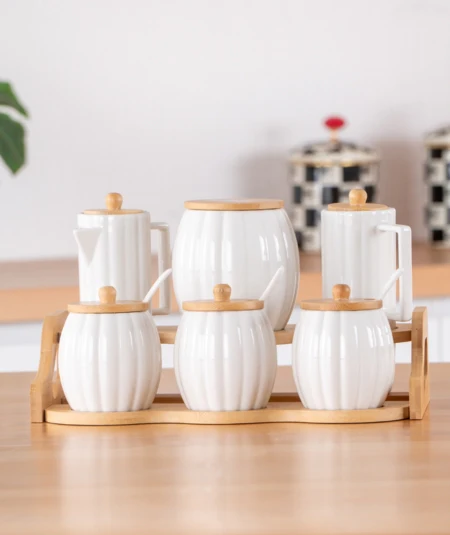 Acar Set de Pots à Épices Tamara | L’Élégance de la Porcelaine et du Bambou