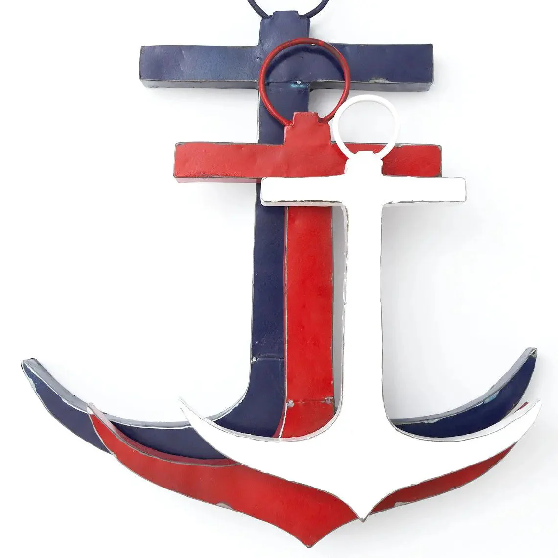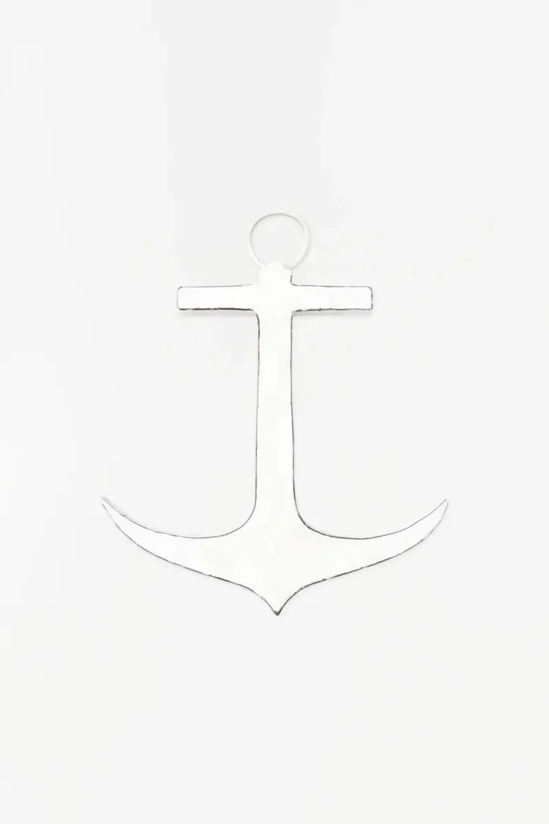 Ancla pequeño de metal reciclado de color blanco para darle un toque de estilo marino a tu hogar o negocio. 34 x 39 cm