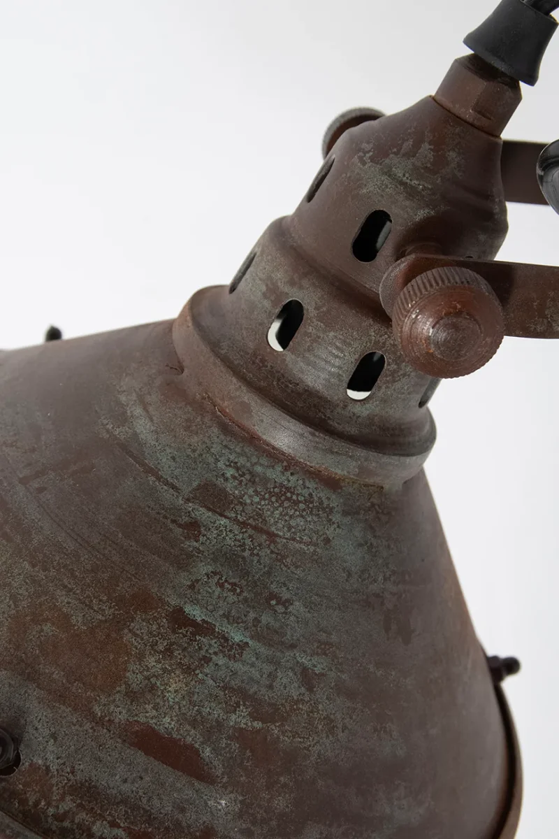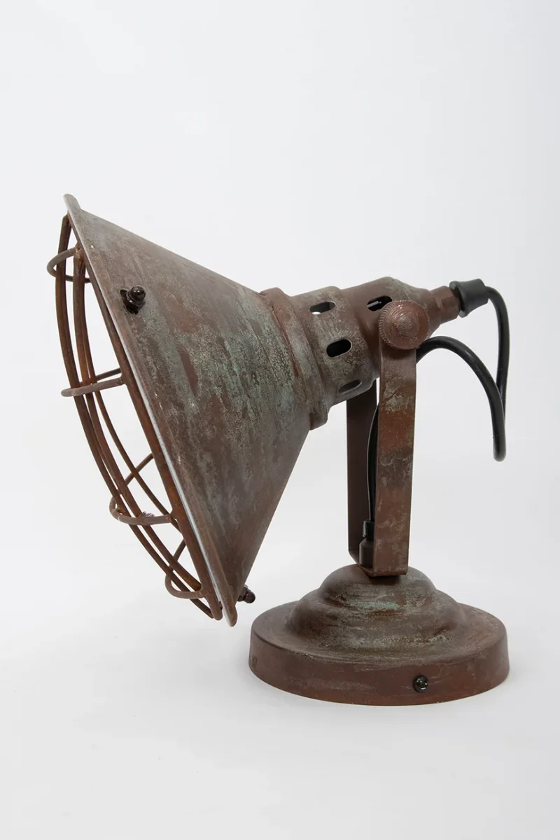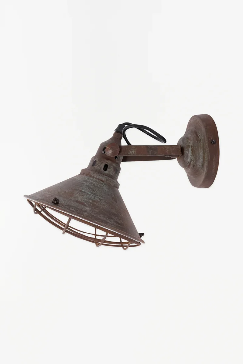 Aplique de pared en metal pintado en color de cobre. Acabado envejecido que aporta un tono evocador al artículo.