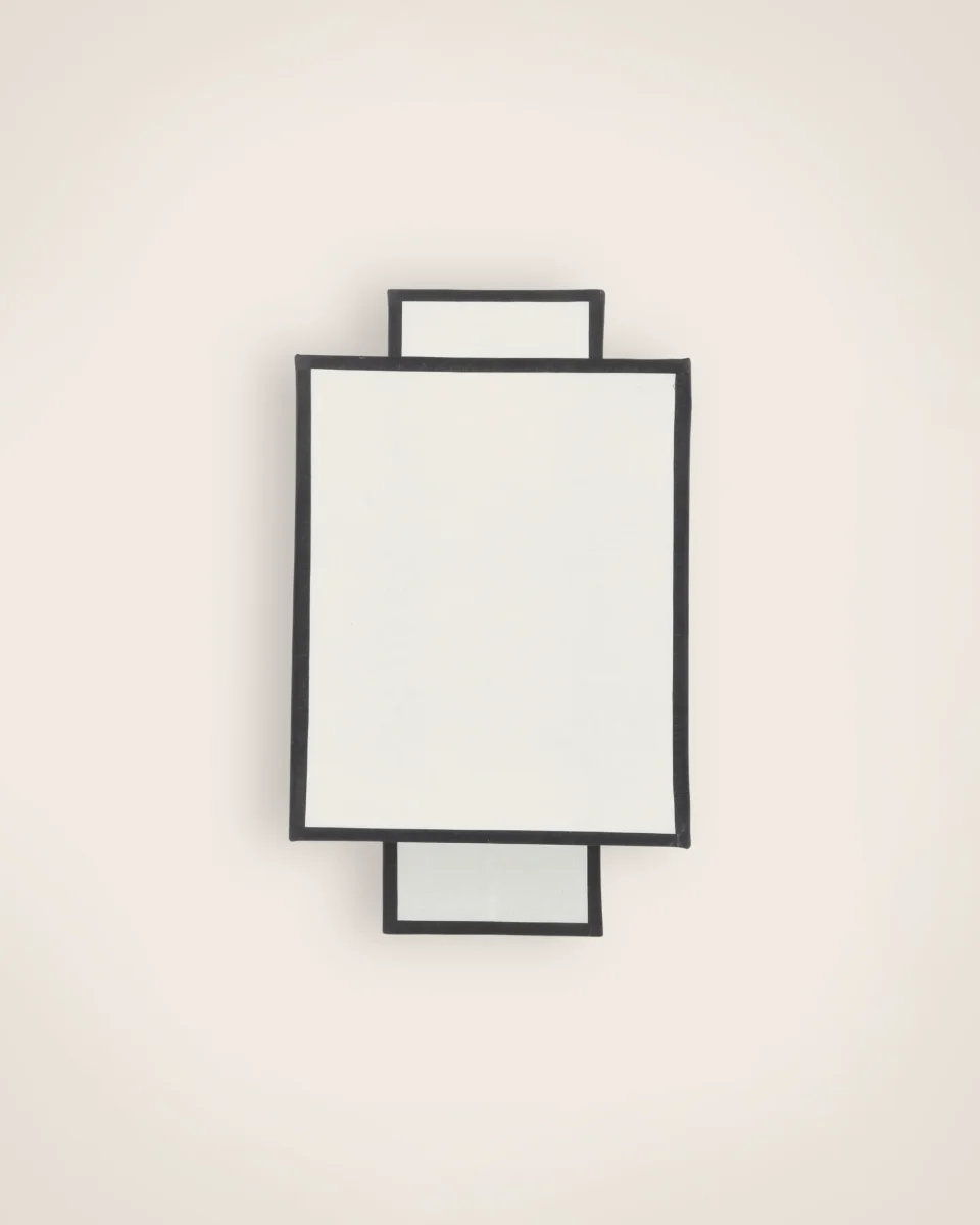 La lumière tamisée, transperce doucement la feuille blanche, ses lignes épurées sont surlignées d’un biais noir, l’ensemble allie esprit rétro et contemporain avec agilité.