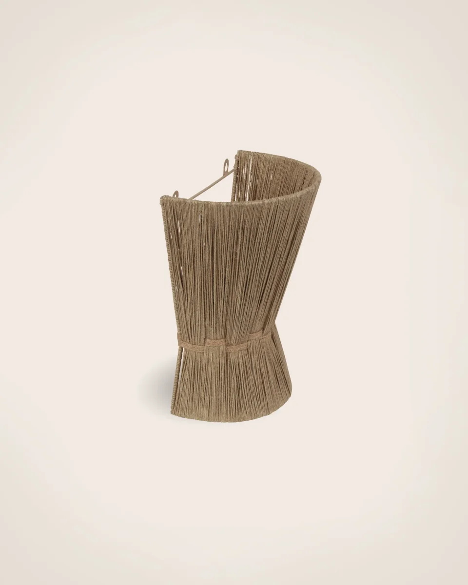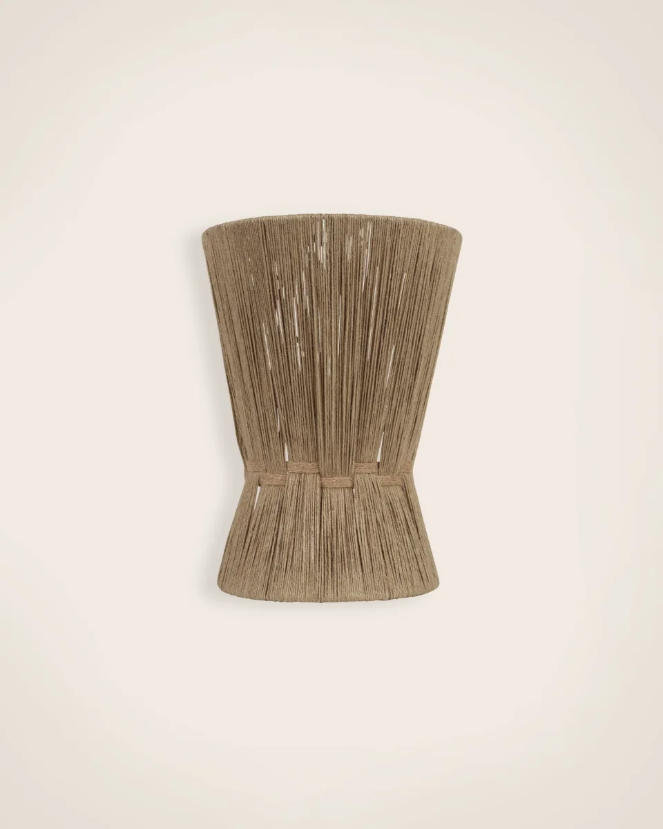 La lumière se diffuse subtilement à travers les fils de jute, créant un jeu d’ombres et de textures qui réchauffe l’espace. Lasso apporte une touche artisanale et authentique à l’intérieur. Installée dans un salon, une chambre ou un couloir, elle habille le mur tout en diffusant une lumière douce.