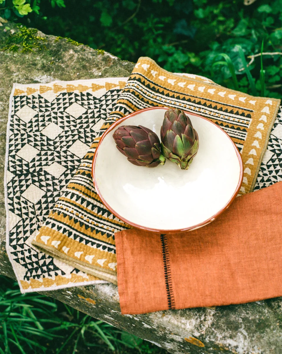 Les bords sont ensuite essuyés délicatement afin de faire ressortir en finesse un liseré de couleur de la terre brute.