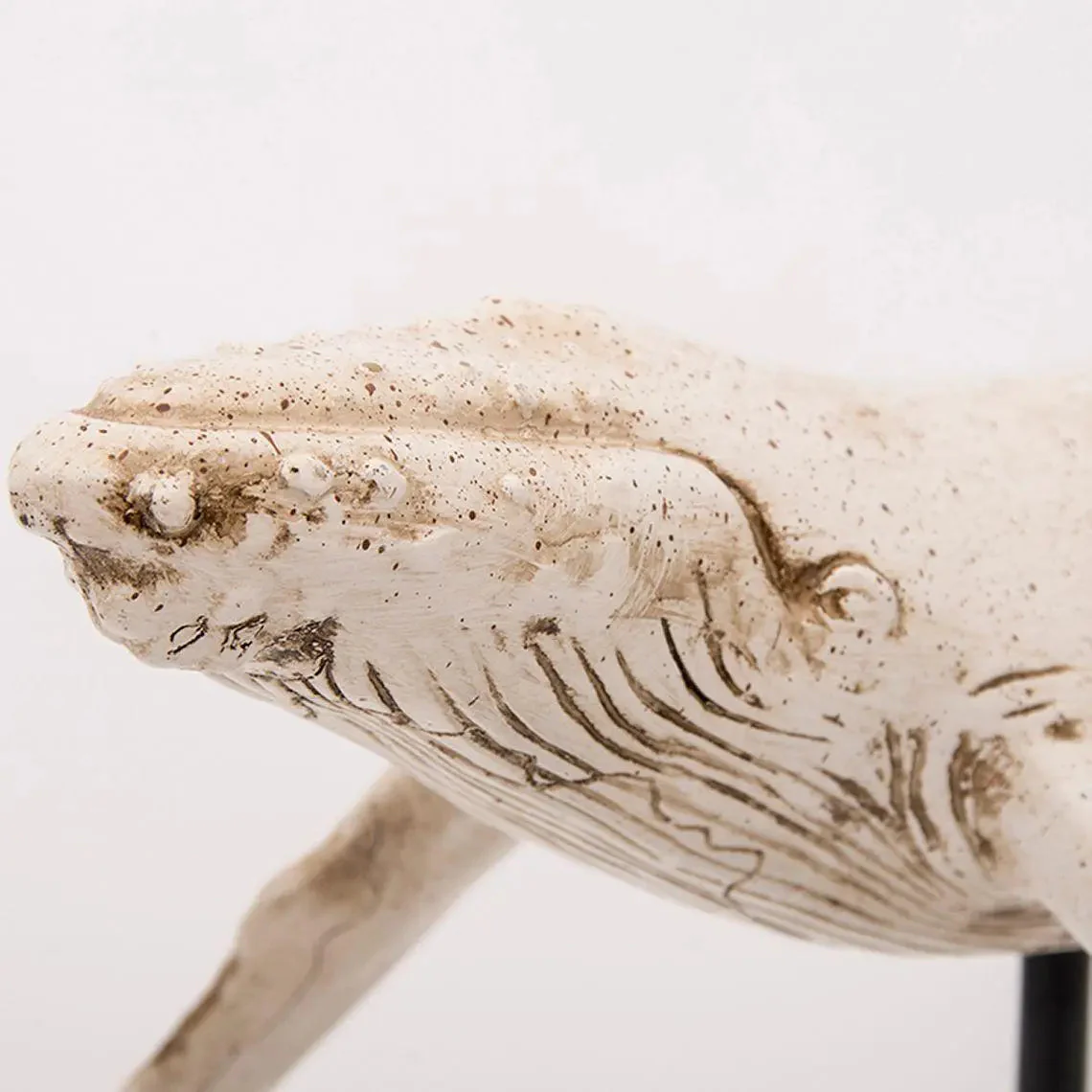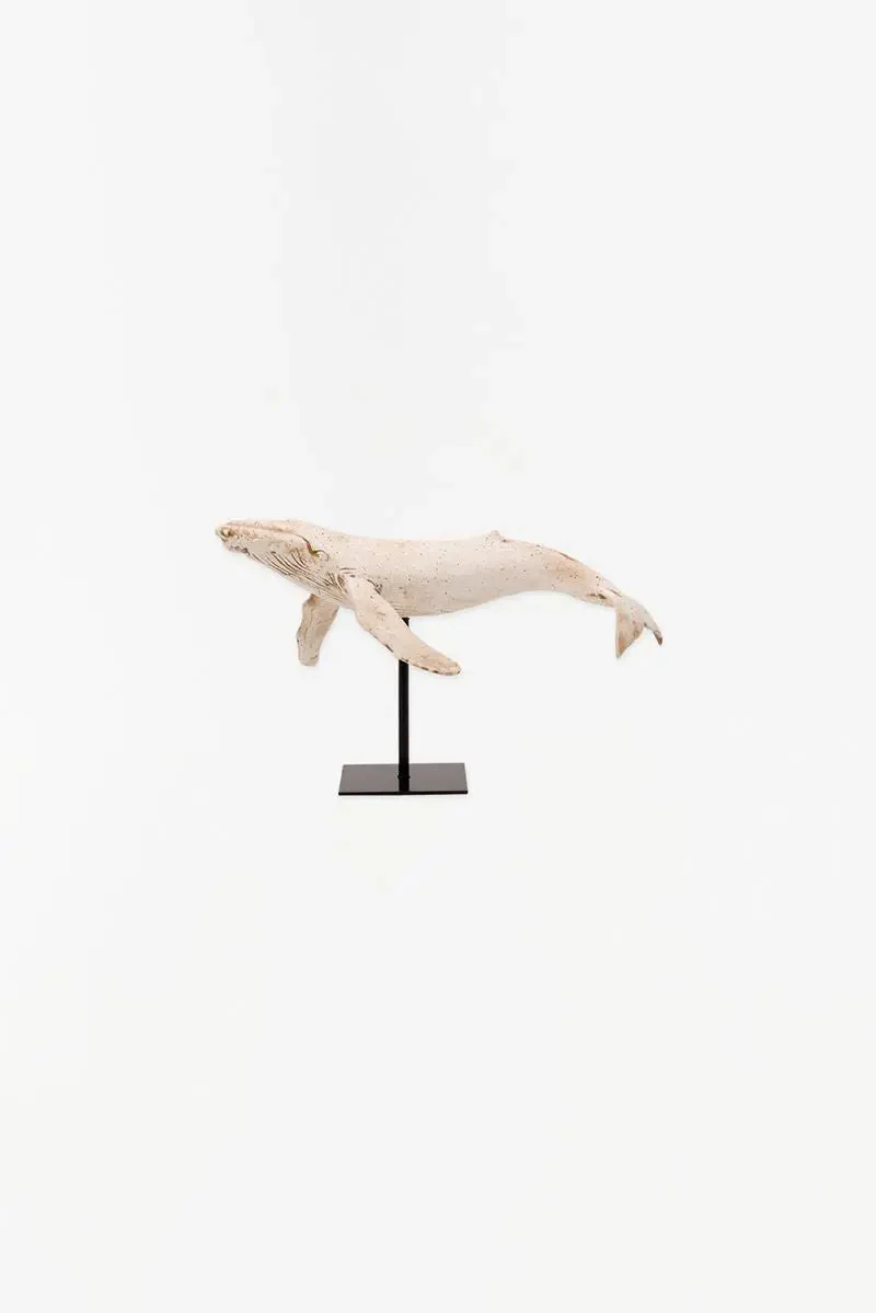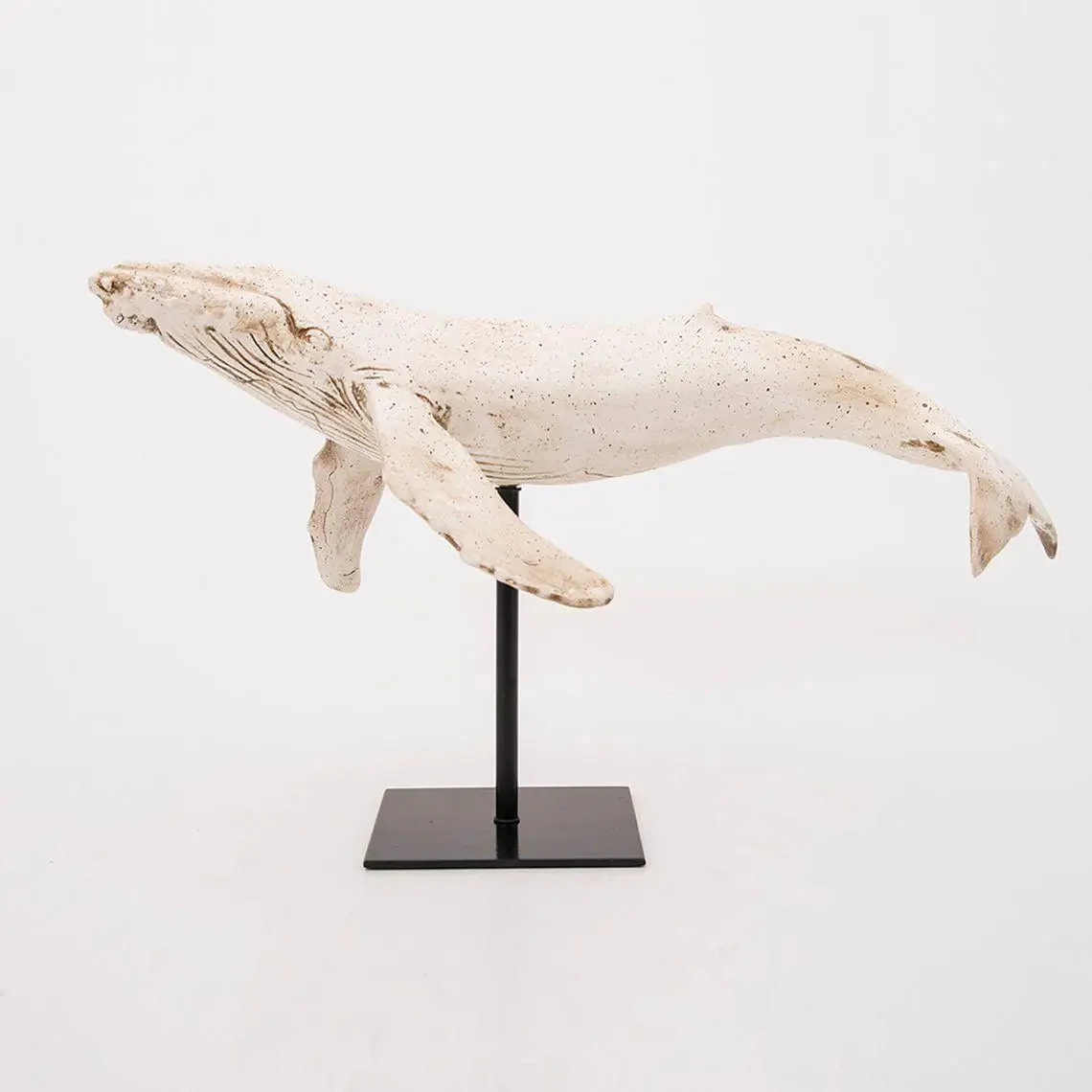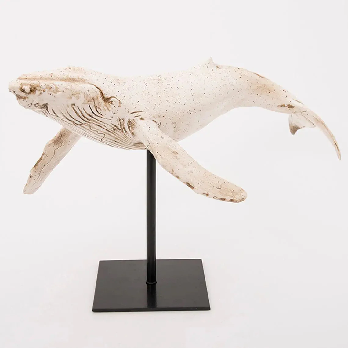 Ballena de color blanco hecho de resina. Con base de metal. Un detalle elegante que aporta luz a tu estancia