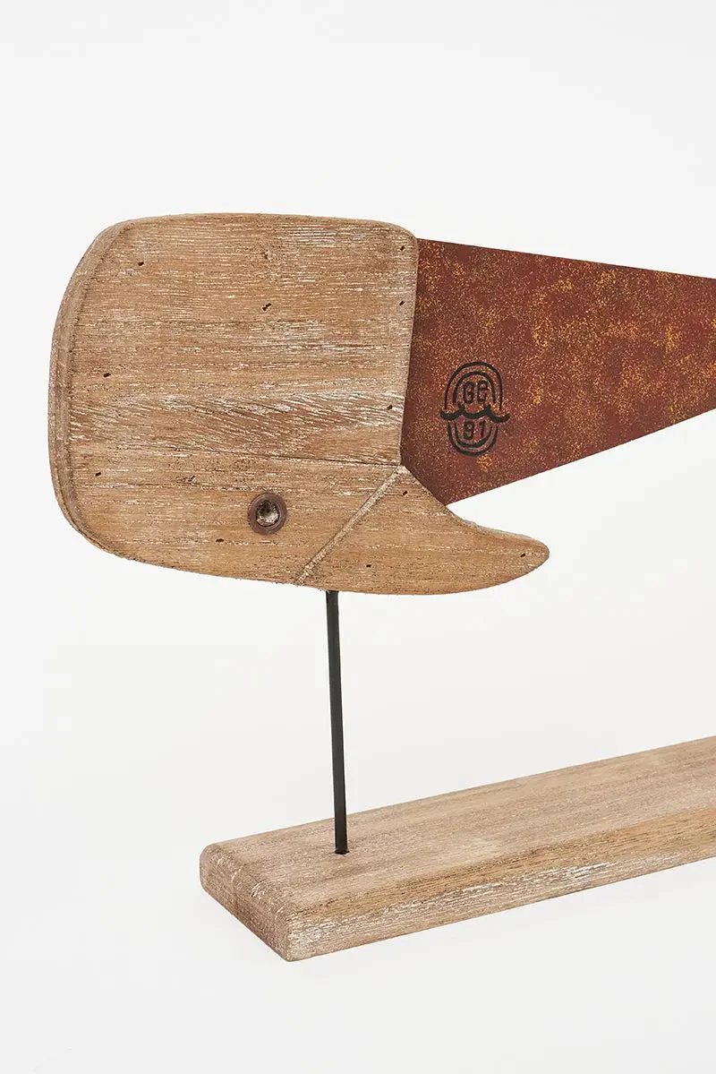 Ballena de madera y metal