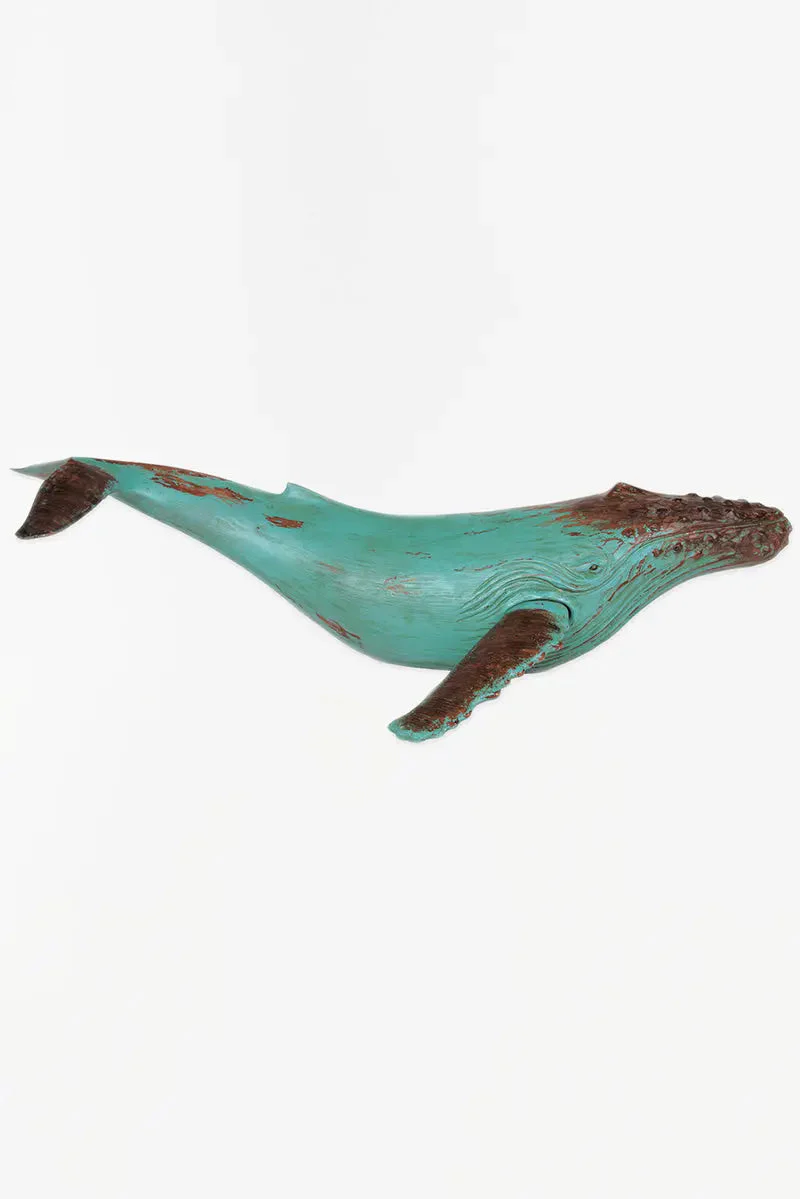 Ballena jorobada de gran tamaño hecha en resina. Artículo de decoración hecho al detalle con una terminación envejecida en color verde.