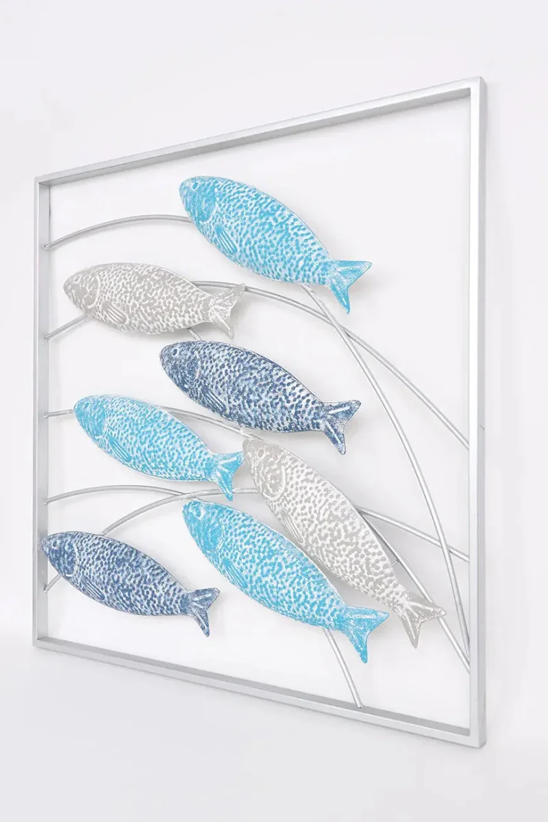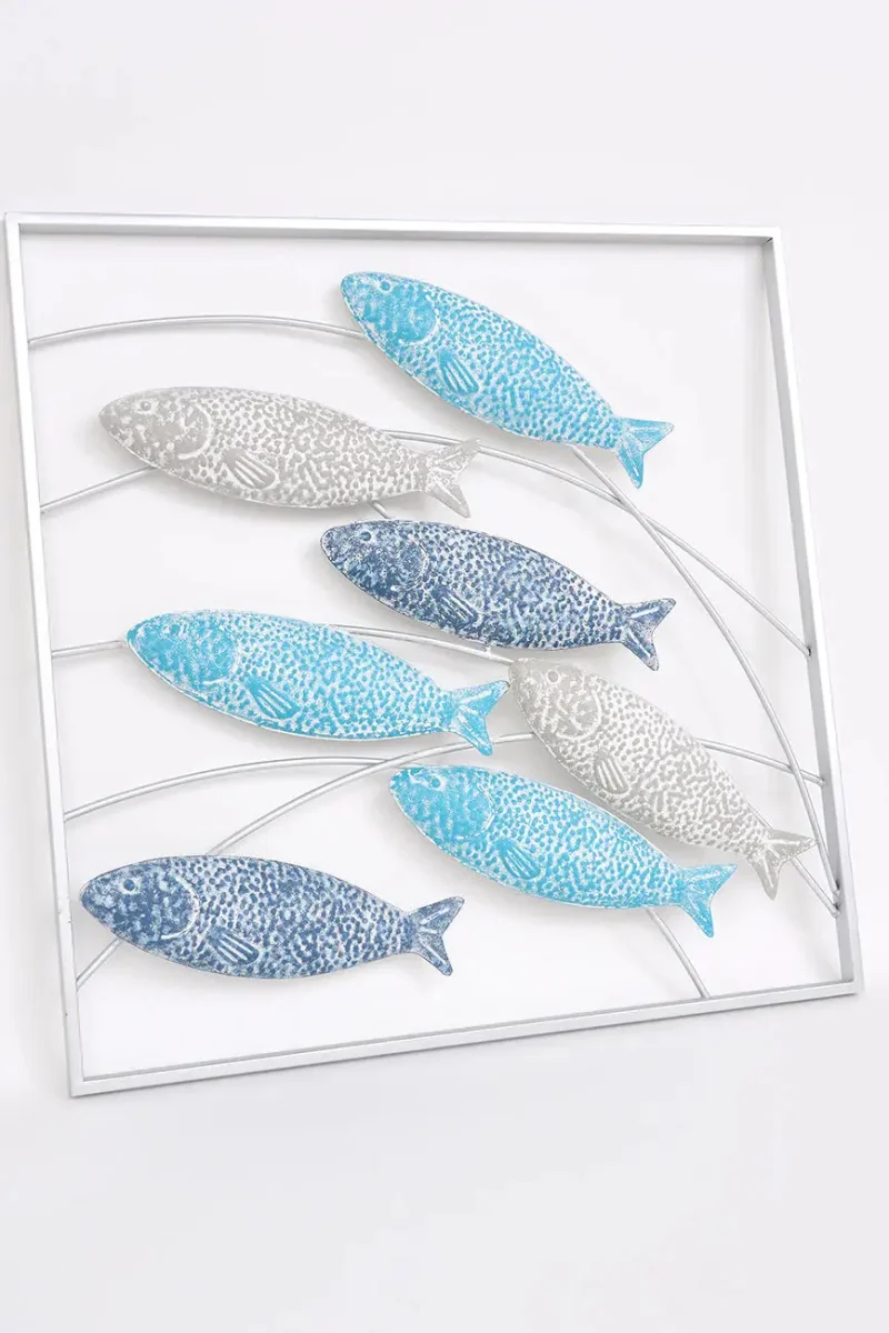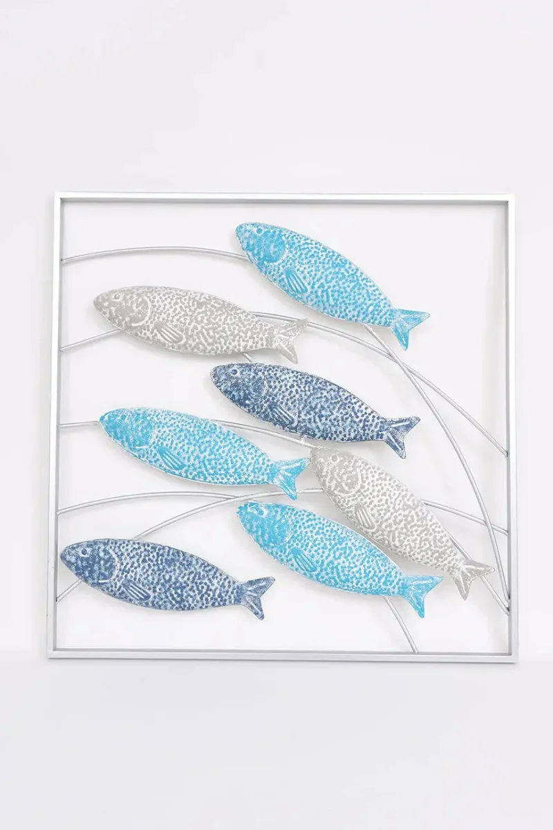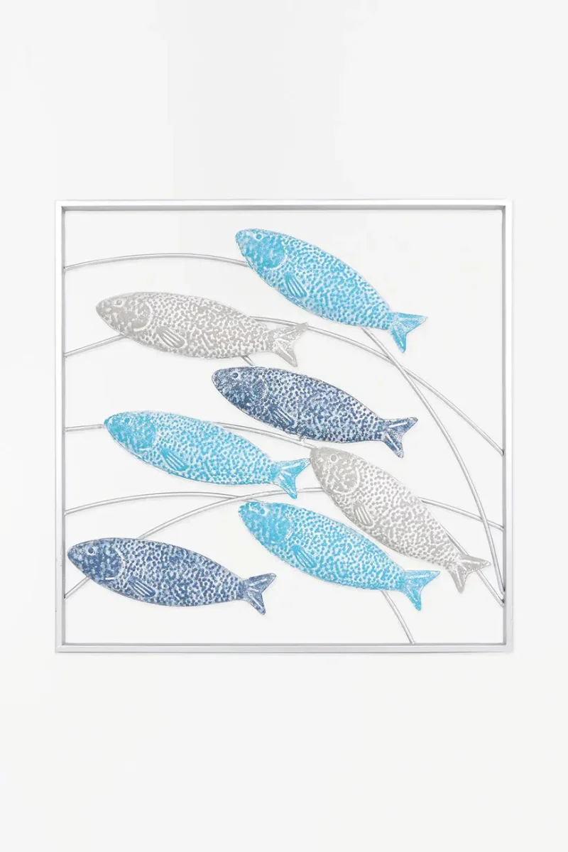 Banco de peces de hojalata enmarcado