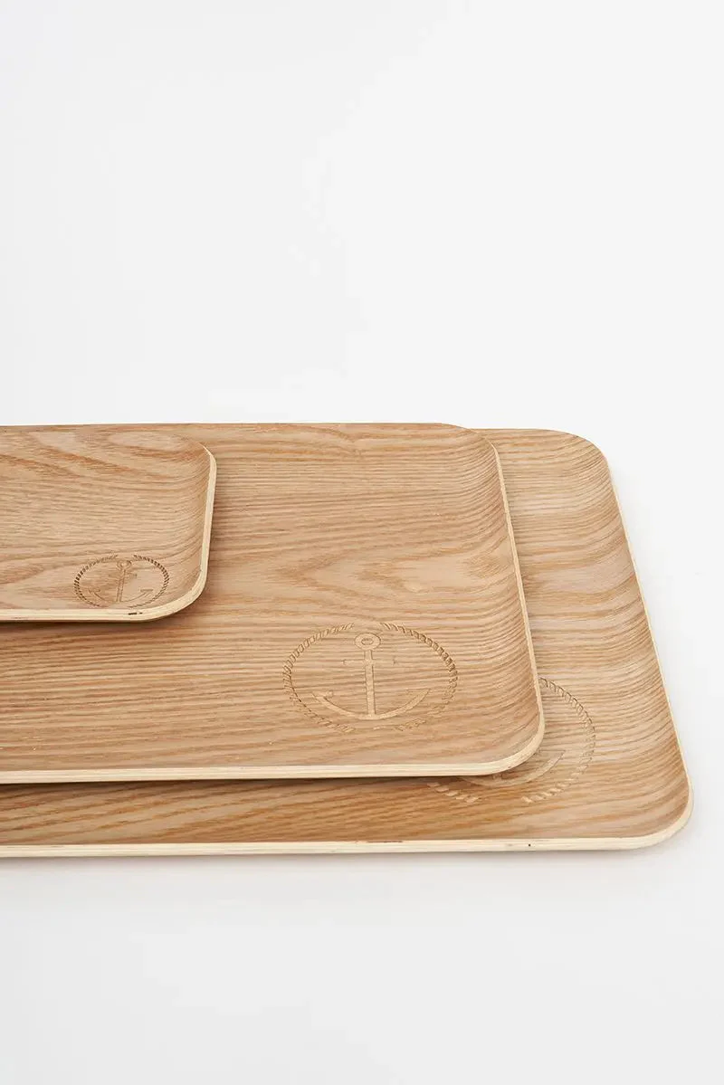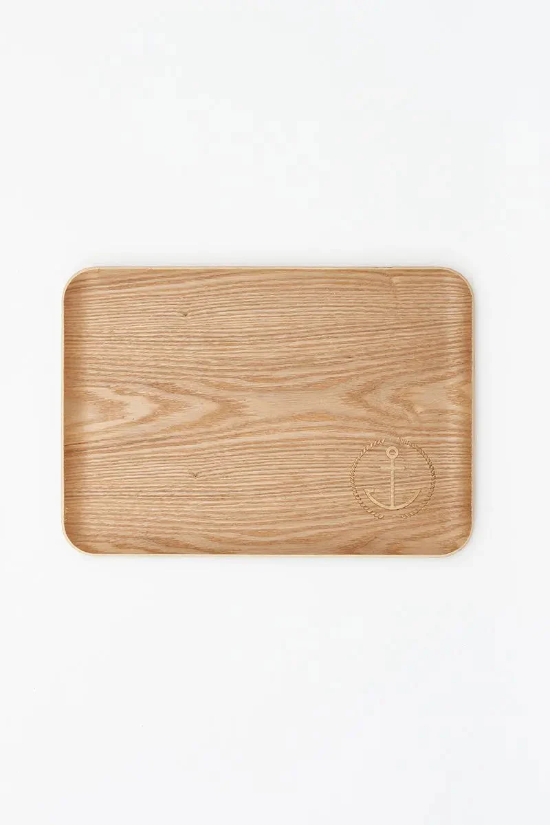 Bandeja de bambú funcional y resistente. Lleva un grabado de un ancla rodeada de un cabo en uno de los extremos. Tamaño mediano hay otros dos tamaños