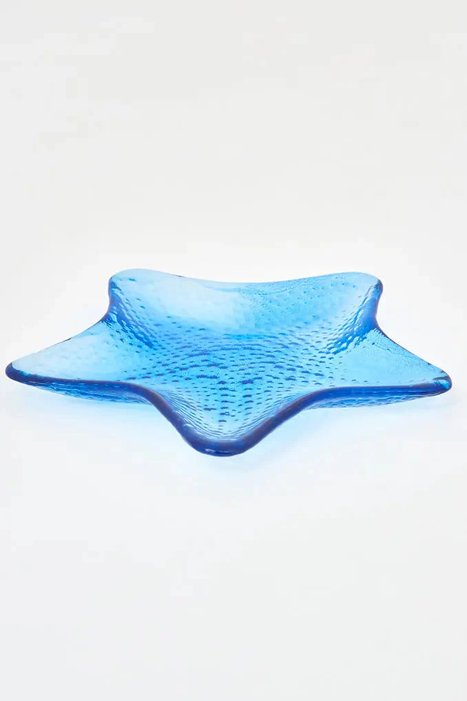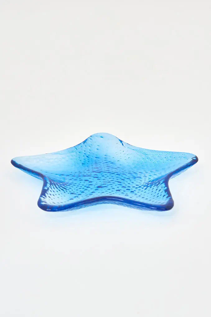 Bandeja estrella de mar azul de cristal pequeña