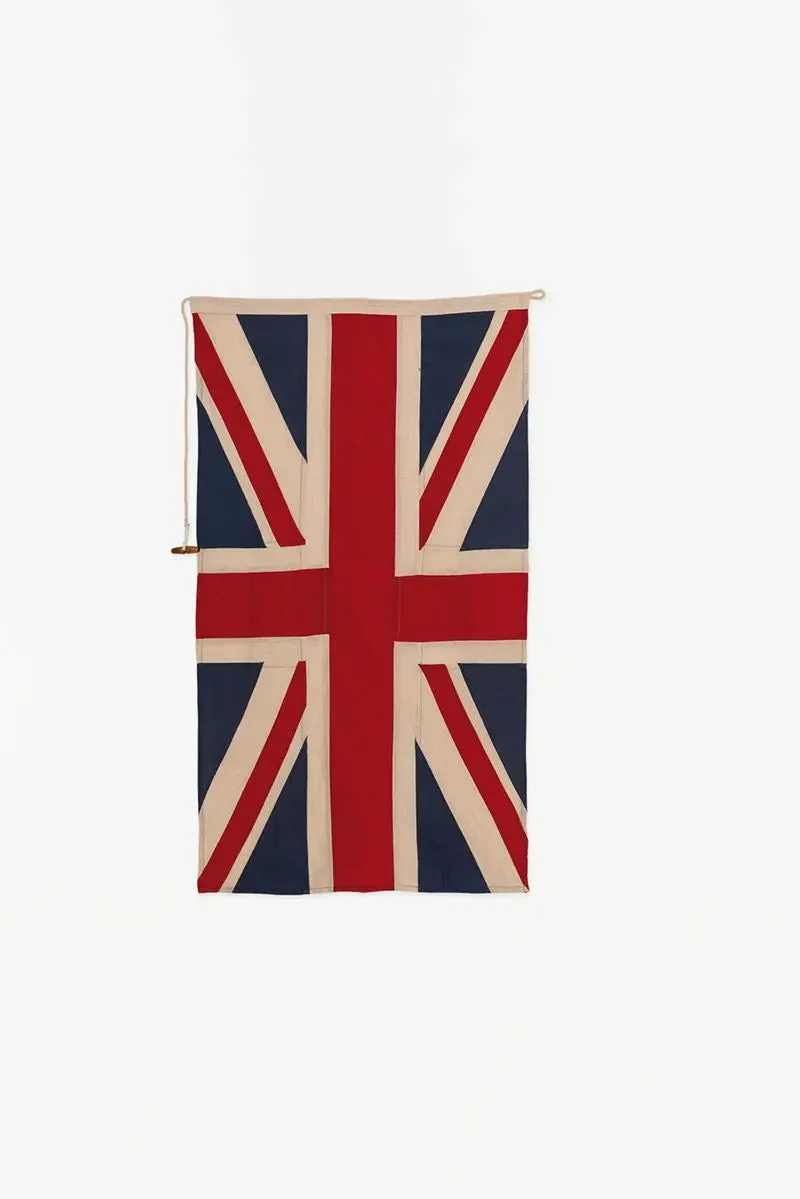 Bandera Gran Bretaña confeccionada en lino crudo con terminación envejecida.