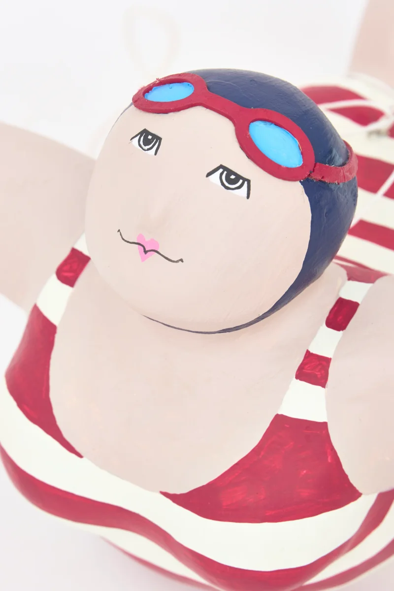 Simpática bañista decorativa elaborada en papel maché.