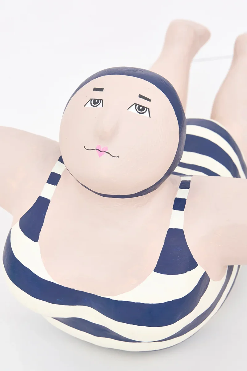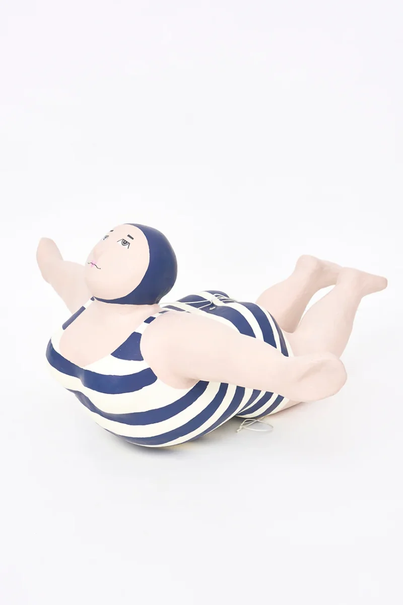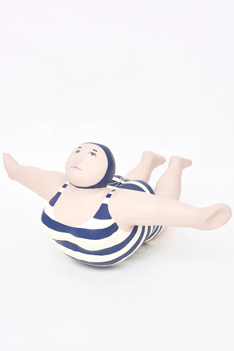 Simpática bañista decorativa elaborada en papel maché.