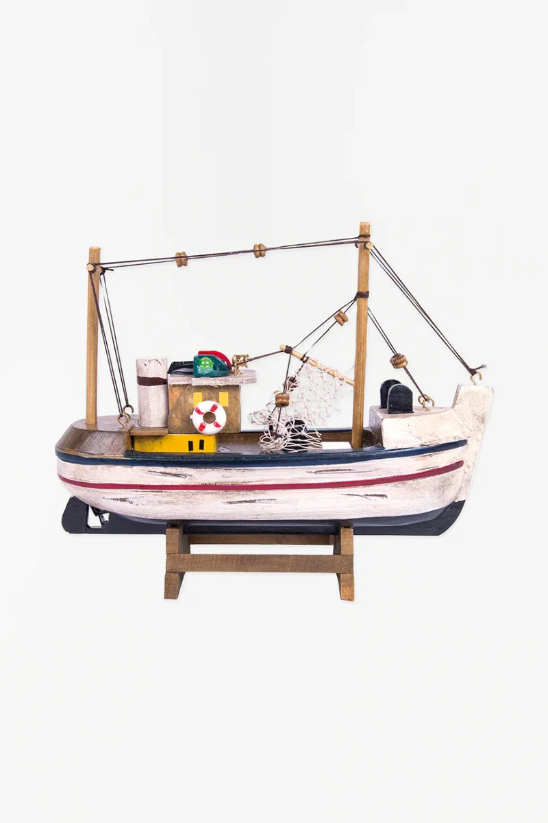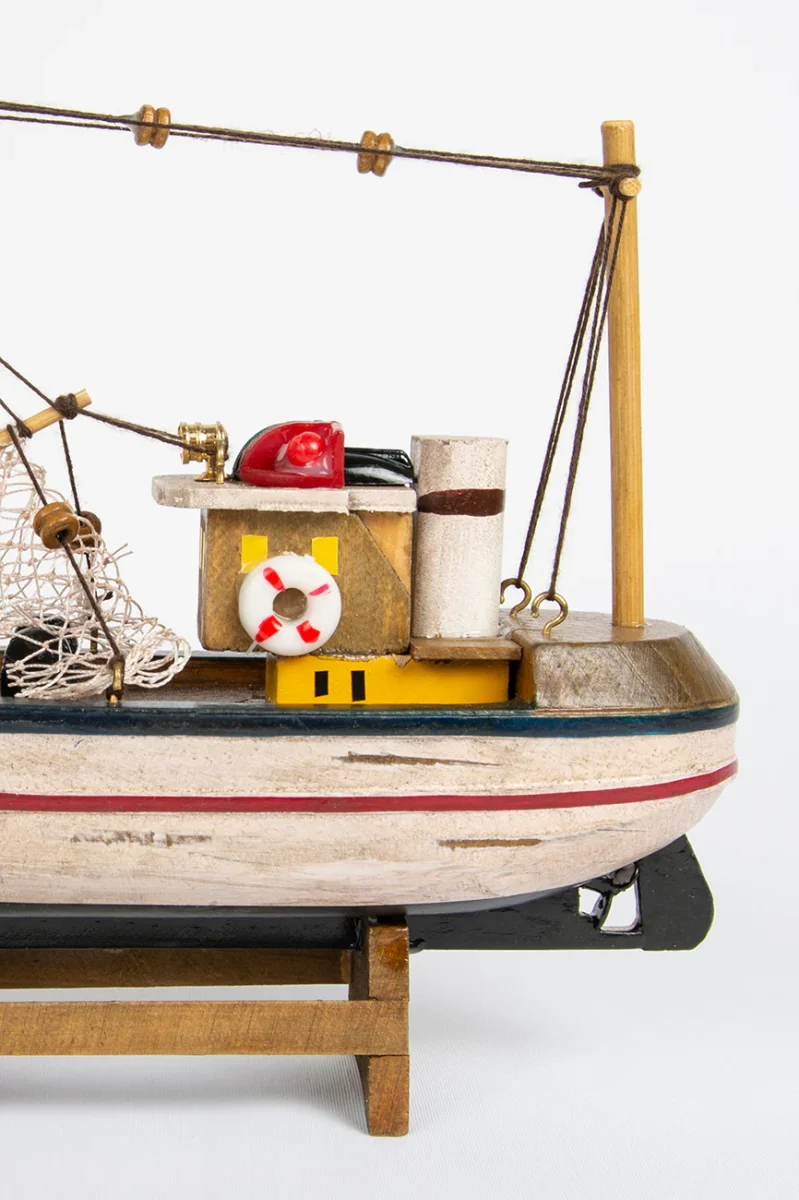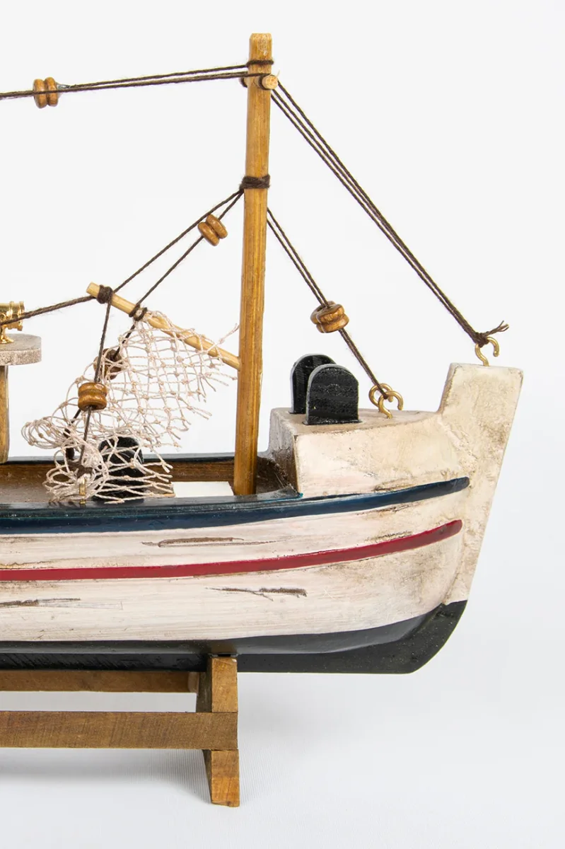 Barco pesquero típico de la costa atlántica. Está hecho de madera y pintado a mano con colores brillantes.