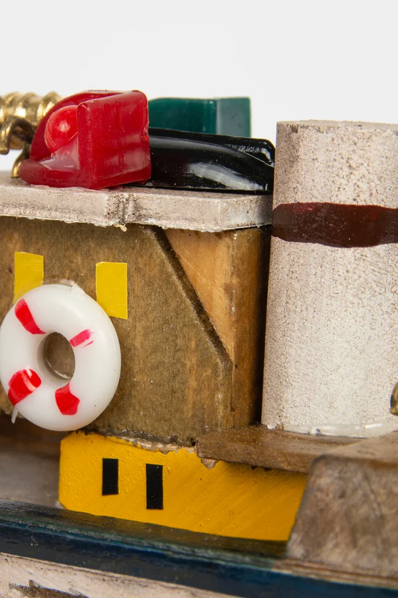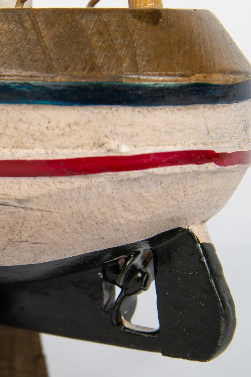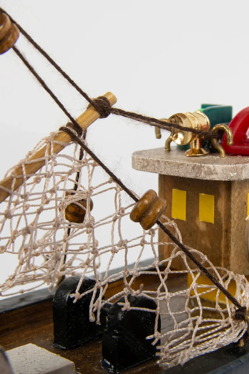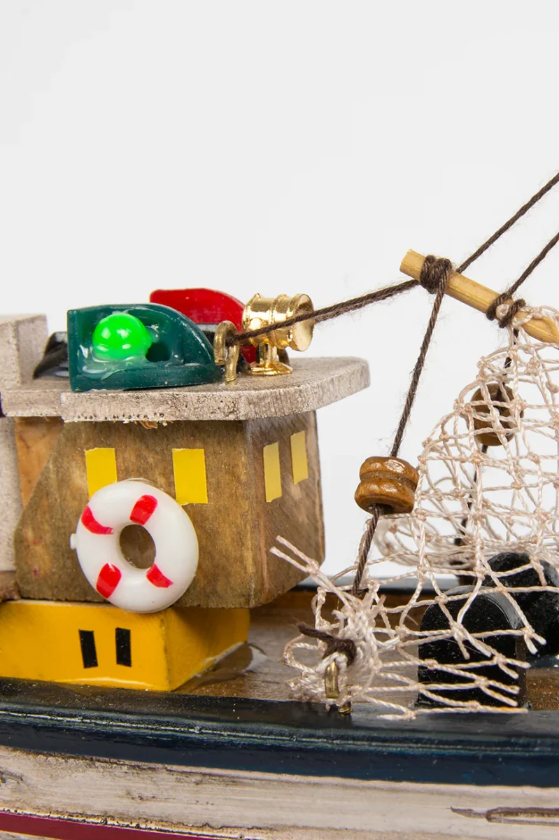 Barco pesquero típico de la costa atlántica. Está hecho de madera y pintado a mano con colores brillantes.