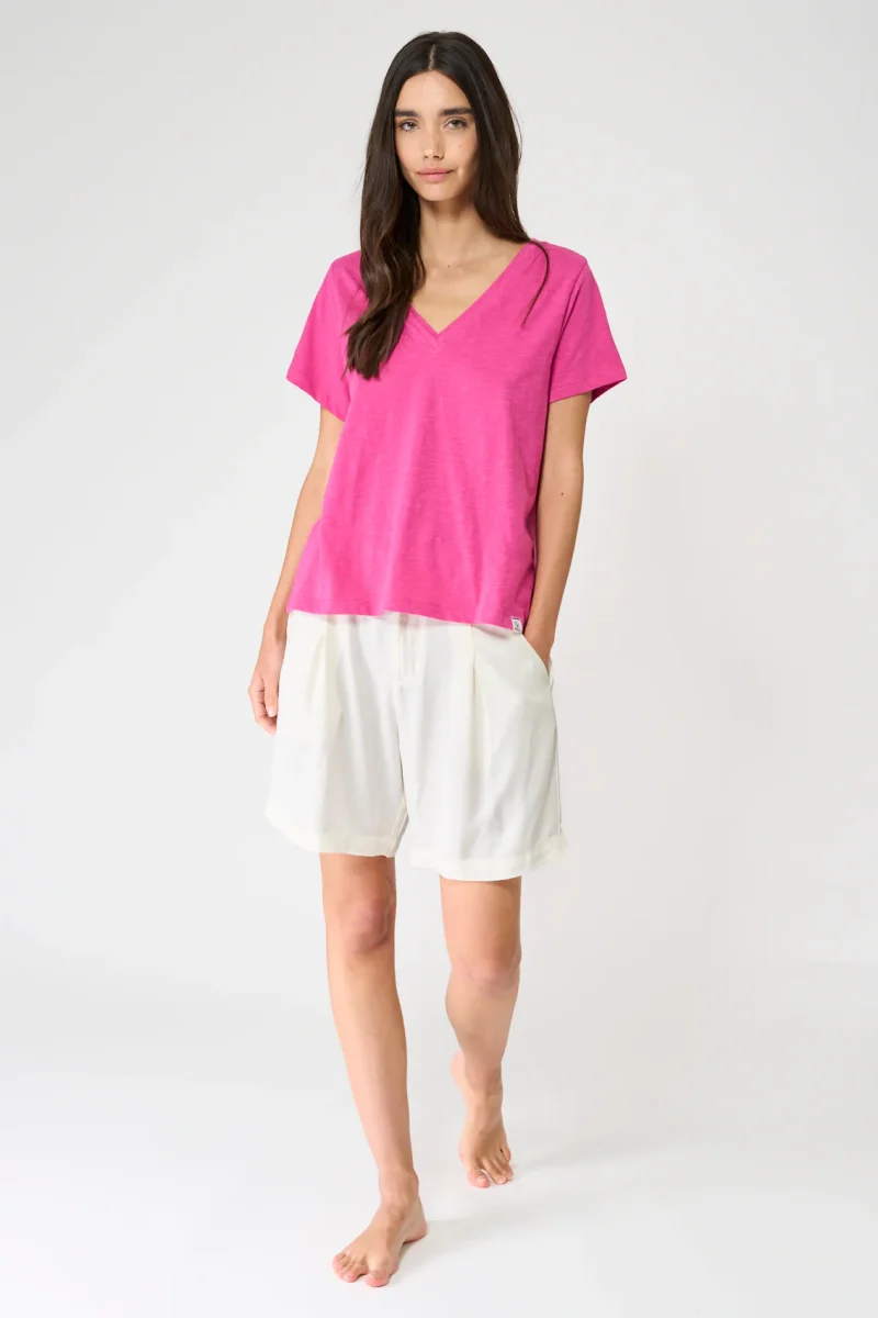 Diseño recto, con bolsillos laterales y largo por encima de la rodilla, que junto con el tejido de sarga elevan una prenda clásica de verano hacia un look más cuidado. Una opción cómoda y sencilla, con un estilo más pulido, pensada para el día a día cuando buscas algo fácil pero con intención.
