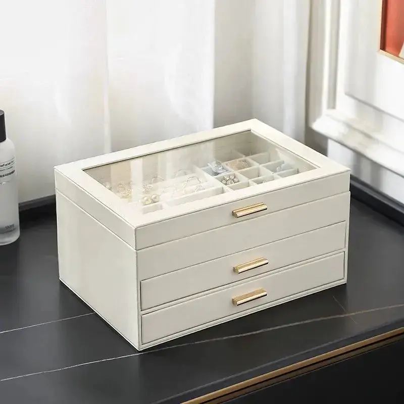 Boite à bijoux à tiroirs – Organisation sophistiquée en daim et PU haute qualité Matériaux daim et PU de haute qualité Système de tiroirs pour organisation optimale Disponible en 4 coloris élégants