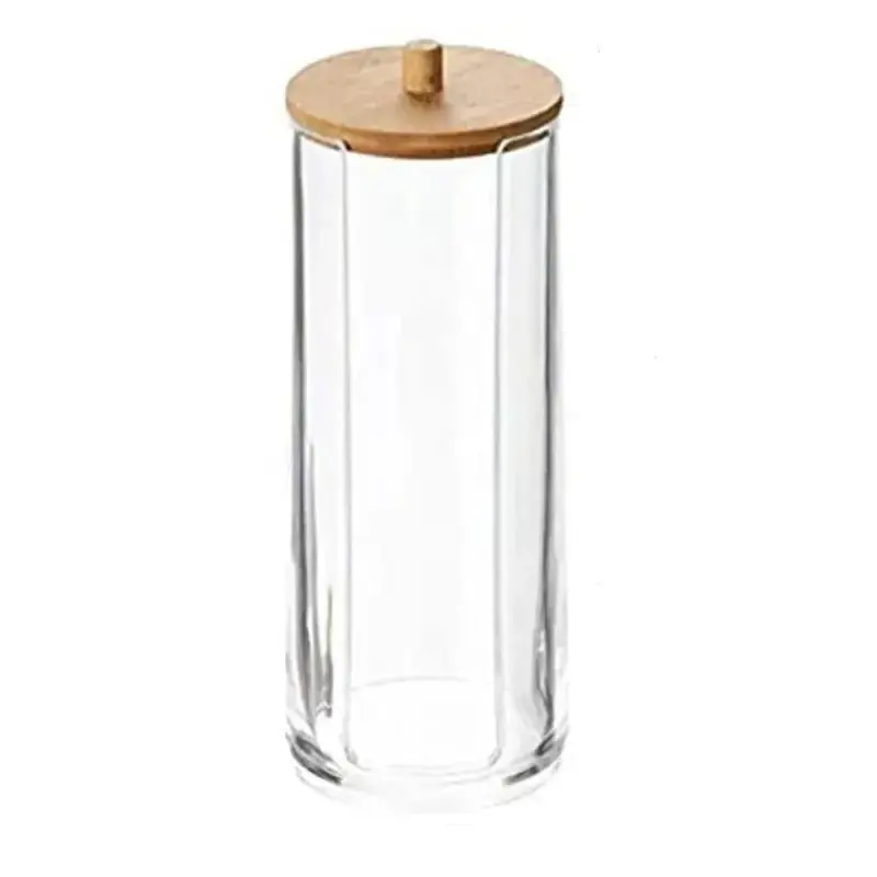 Boîte à coton démaquillant – Grande capacité avec couvercle bambou anti-éparpillement