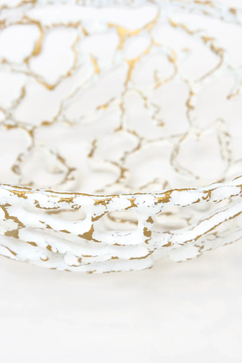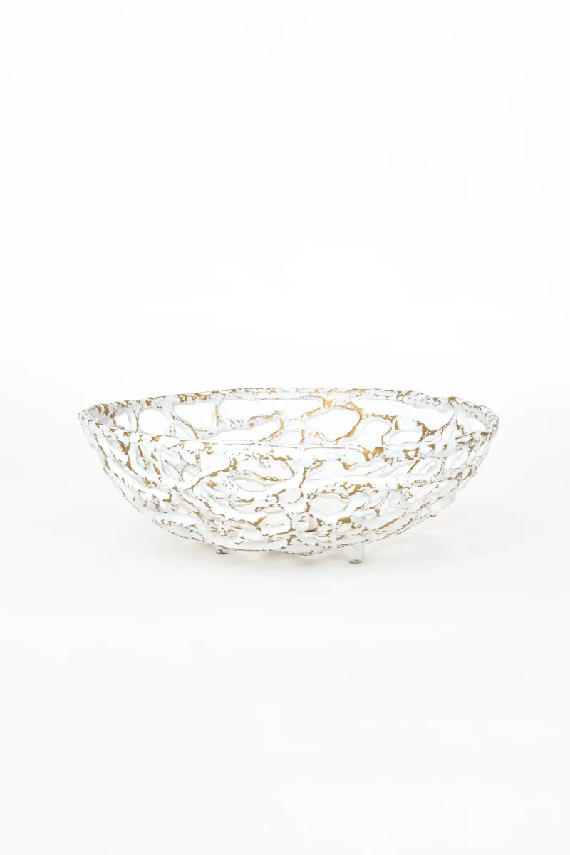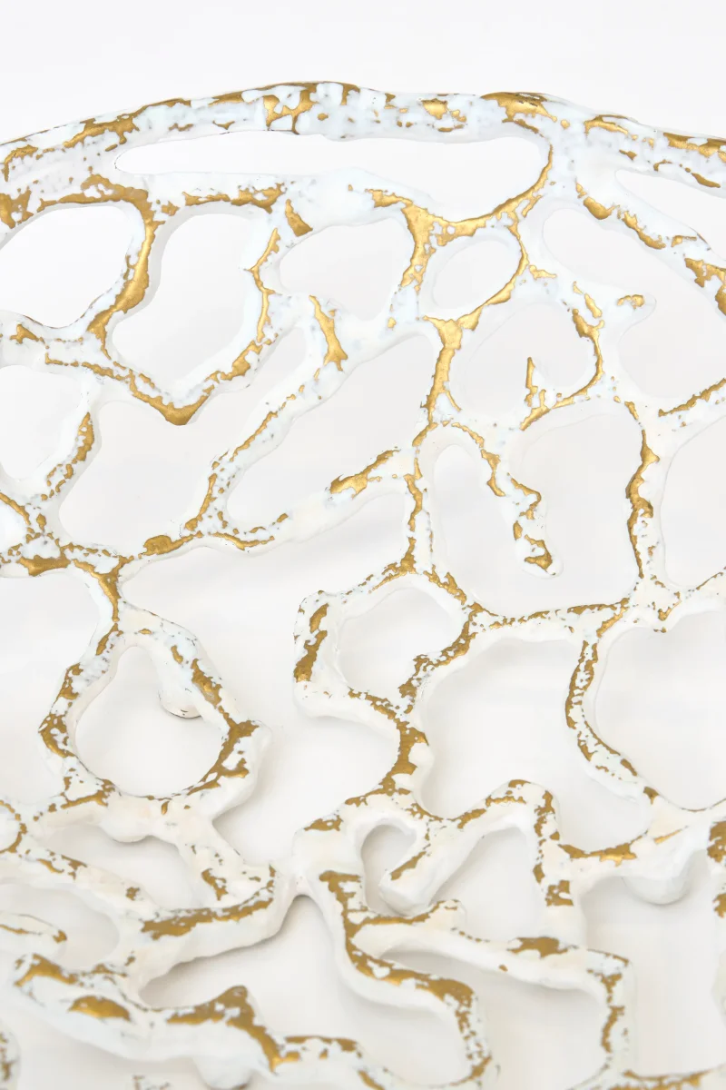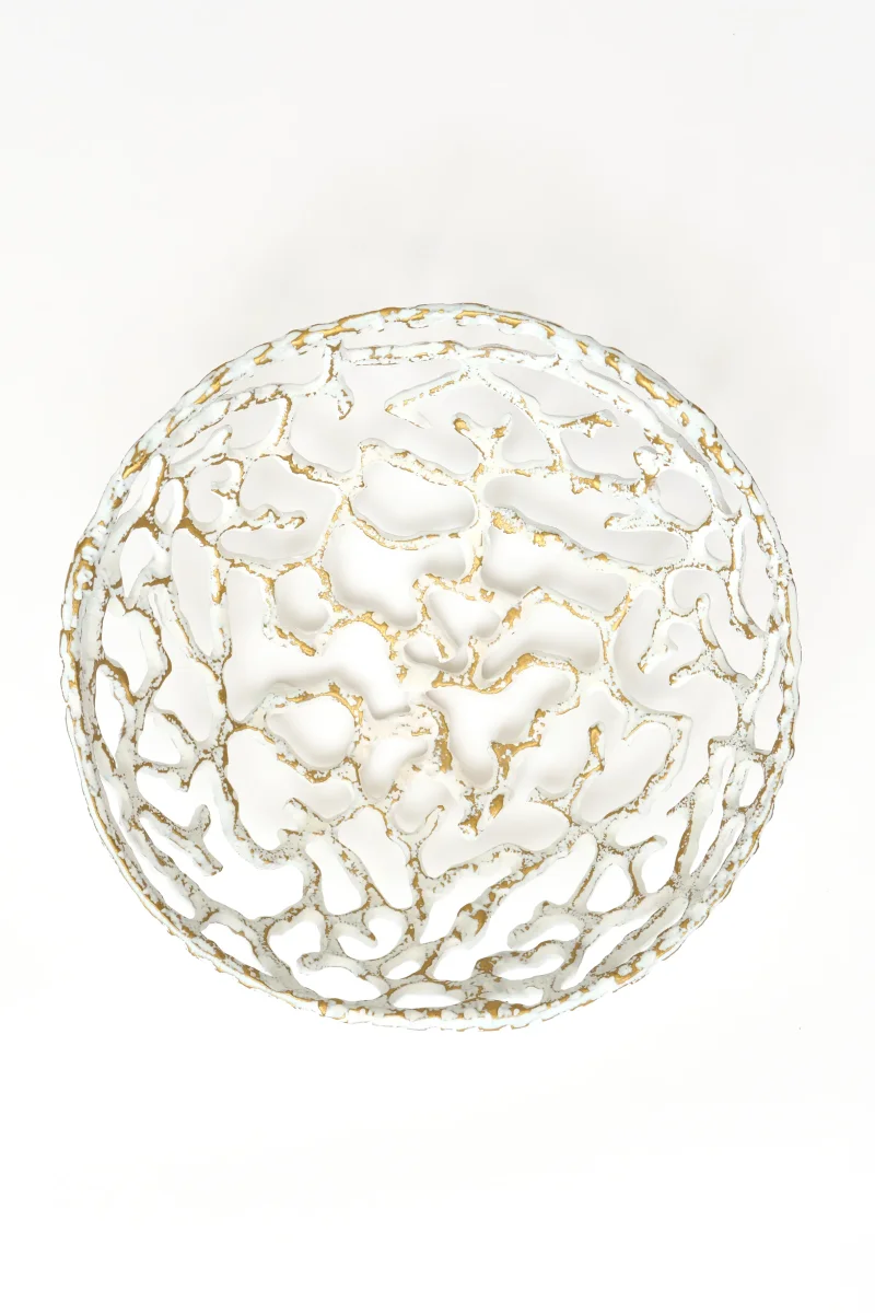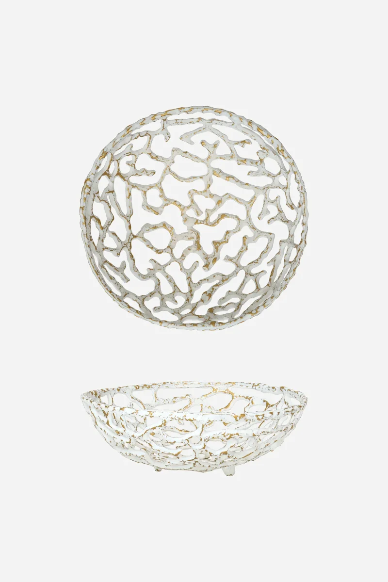 Bol decorativo de aluminio con diseño de coral y formato amplio. Pensado como pieza central para la mesa o como elemento ornamental, aporta textura y presencia visual.