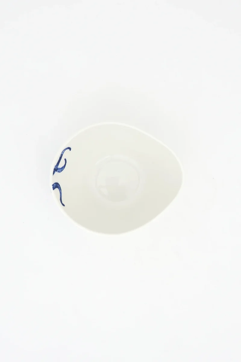 Bol decorado con un pulpo pintado en color azul en uno de sus laterales.