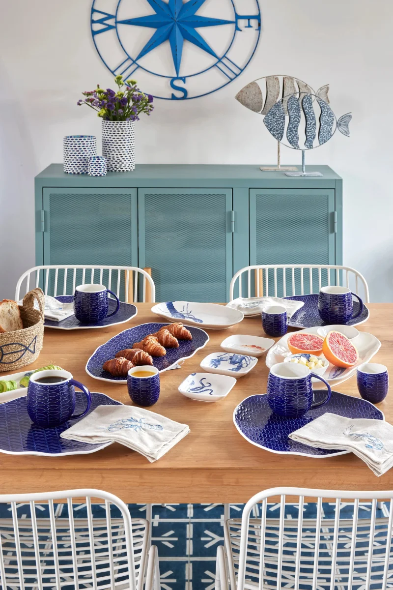 Añade un toque distintivo a tu mesa con nuestro bol de cerámica pequeño en azul y blanco con peces en relieve. Cada detalle está cuidadosamente elaborado para crear una pieza única. Este bol no solo es funcional, sino que también es una pieza que realza la presentación de tus platos. Peces ligados.