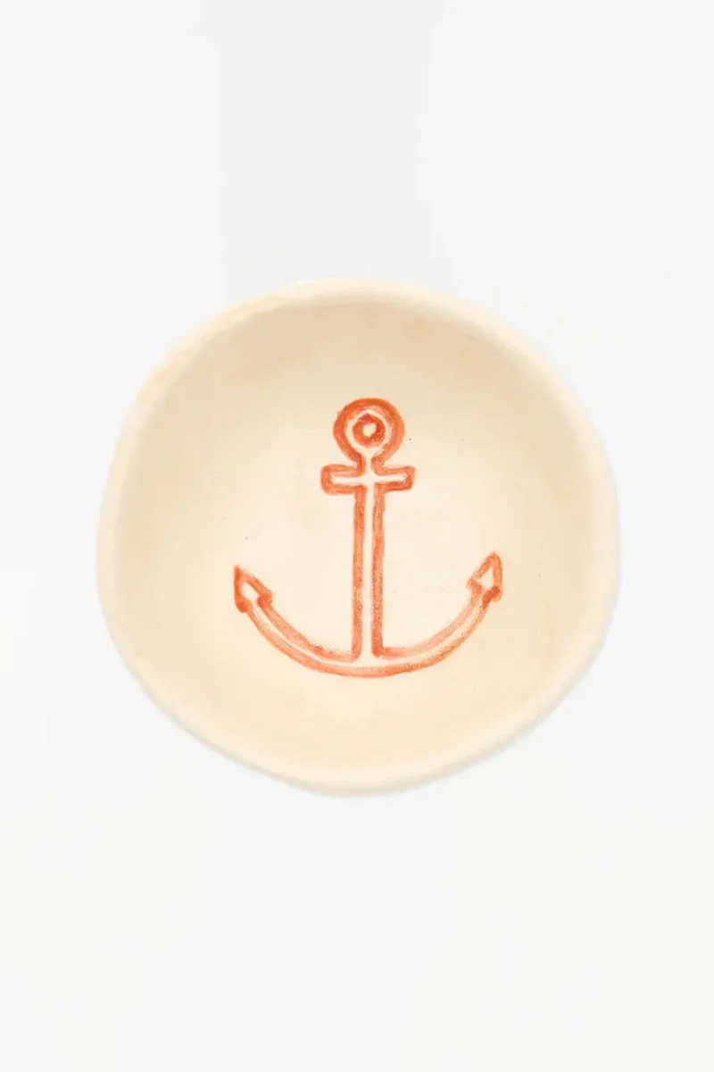 Precioso bol de gres con un ancla pintada con un acabado envejecido en el cuenco. Una forma discreta y bonita de aportar un toque marinero al hogar empezando desde la cocina.