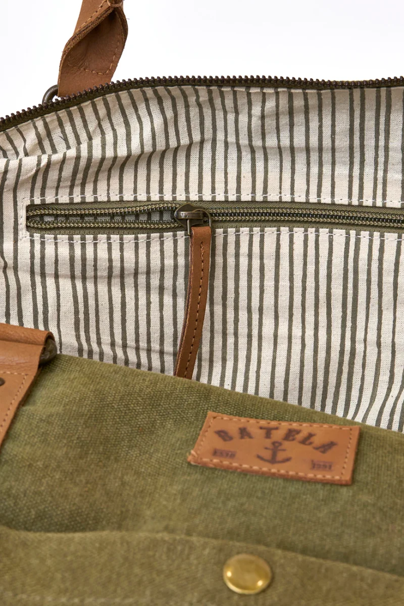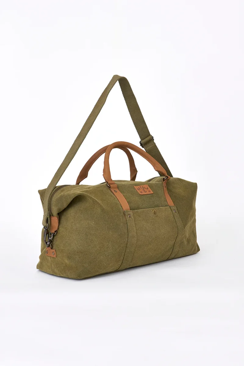 Bolsa de viaje de algodón resistente, pensada para escapadas cortas y uso diario. Su diseño amplio y funcional permite llevar lo imprescindible con comodidad