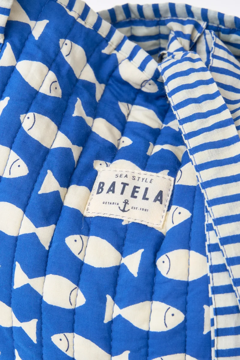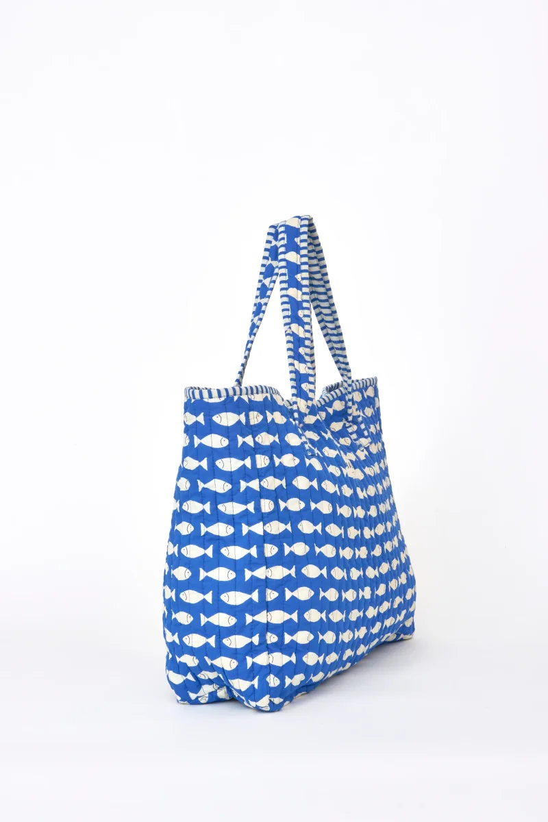 Bolsa tote marinera de algodón con peces