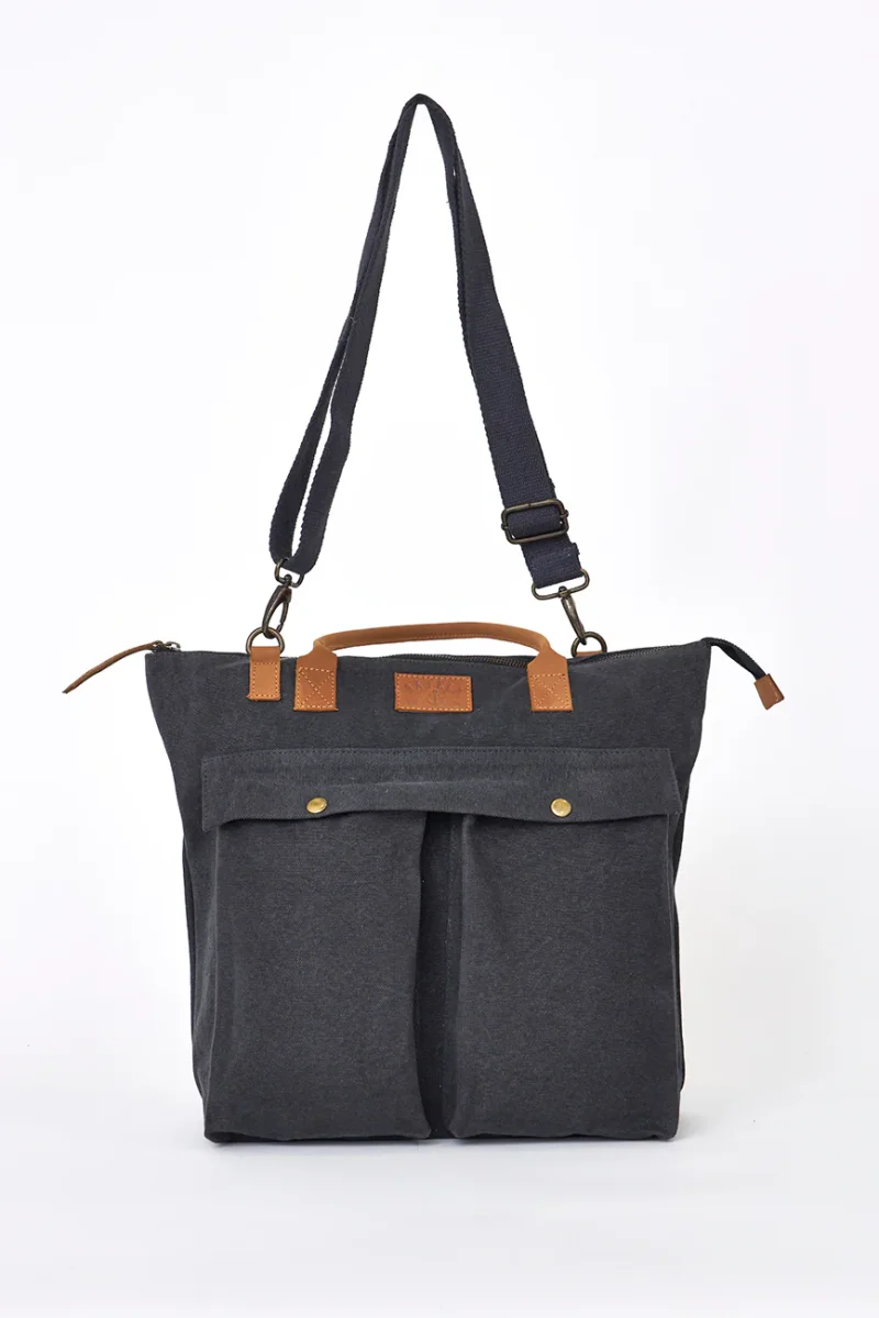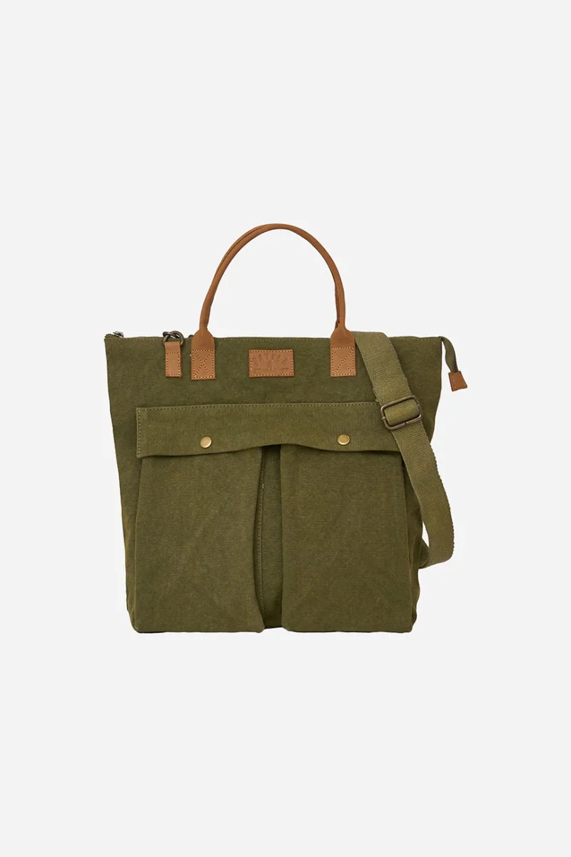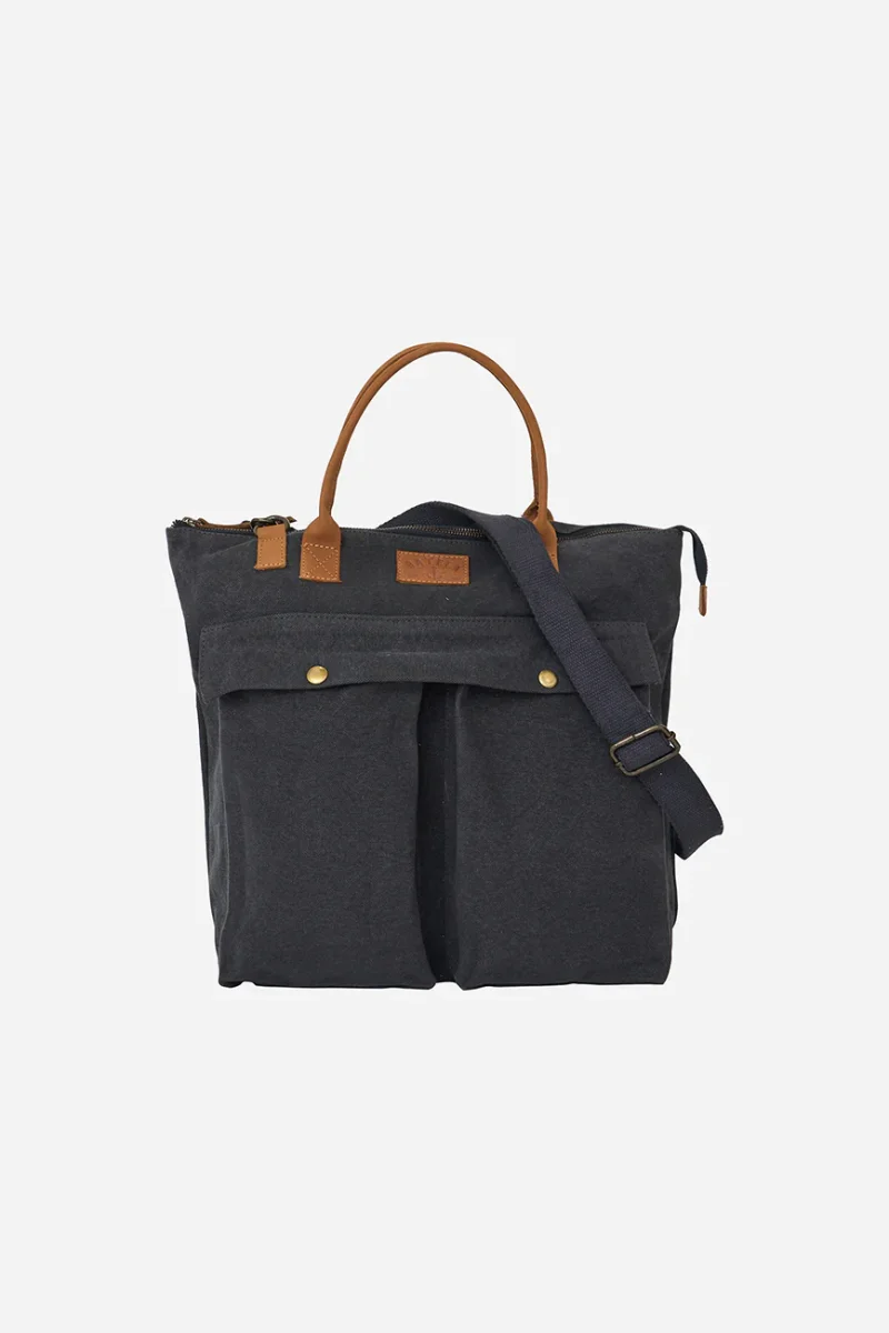 Bolso de algodón resistente con interior forrado de rayas en contraste y bolsillo interior para una mejor organización. Un diseño funcional de estilo costero