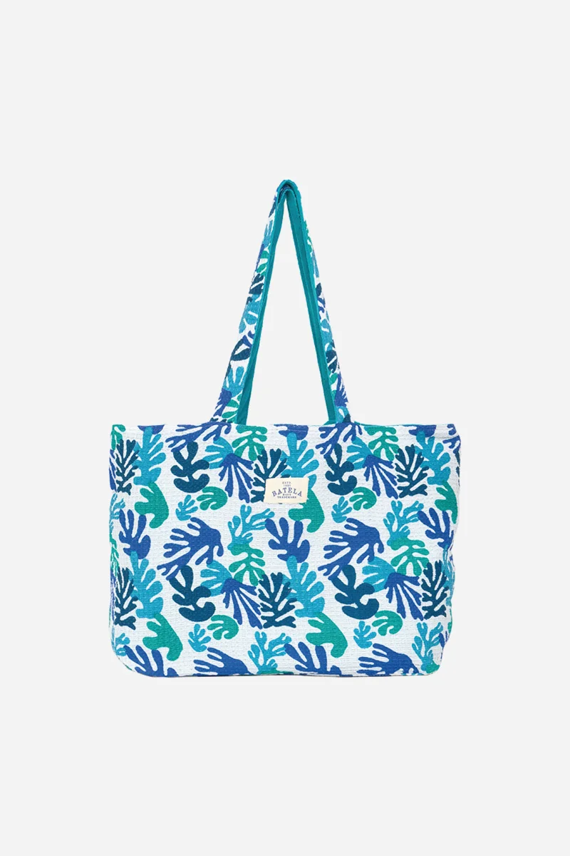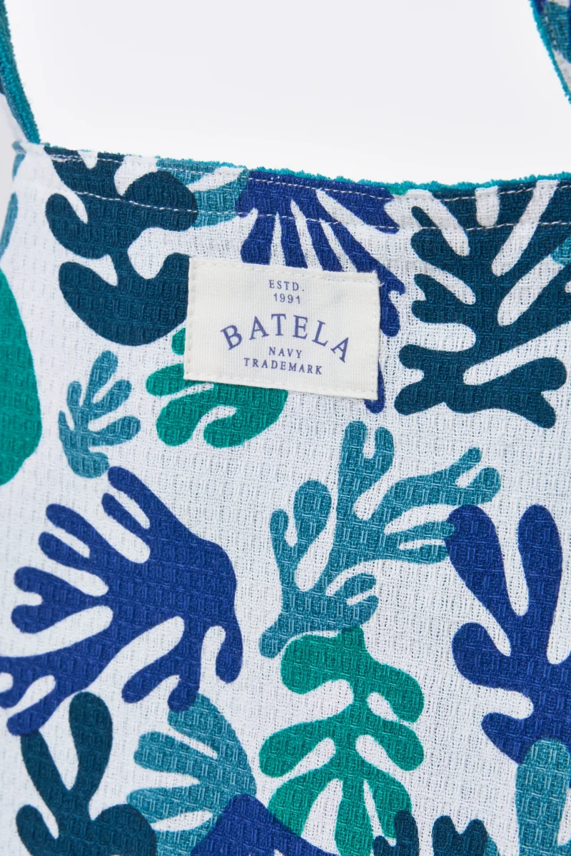 Bolso de gran tamaño elaborado en algodón con diseño con diseño de corales en diferentes tonos. Práctico y ligero para el día a día. Un complemento funcional con aire marinero.