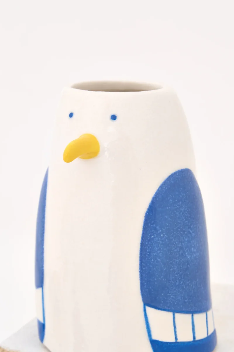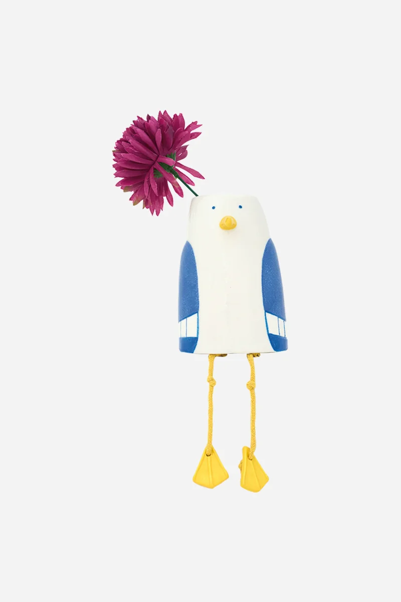 Bote decorativo de gres con forma de gaviota, acabado esmaltado y diseño sencillo de inspiración marinera. Una pieza compacta y decorativa ideal para aportar un toque costero a estanterías, mesas o rincones especiales.