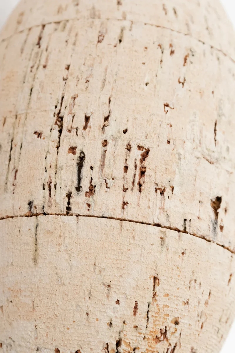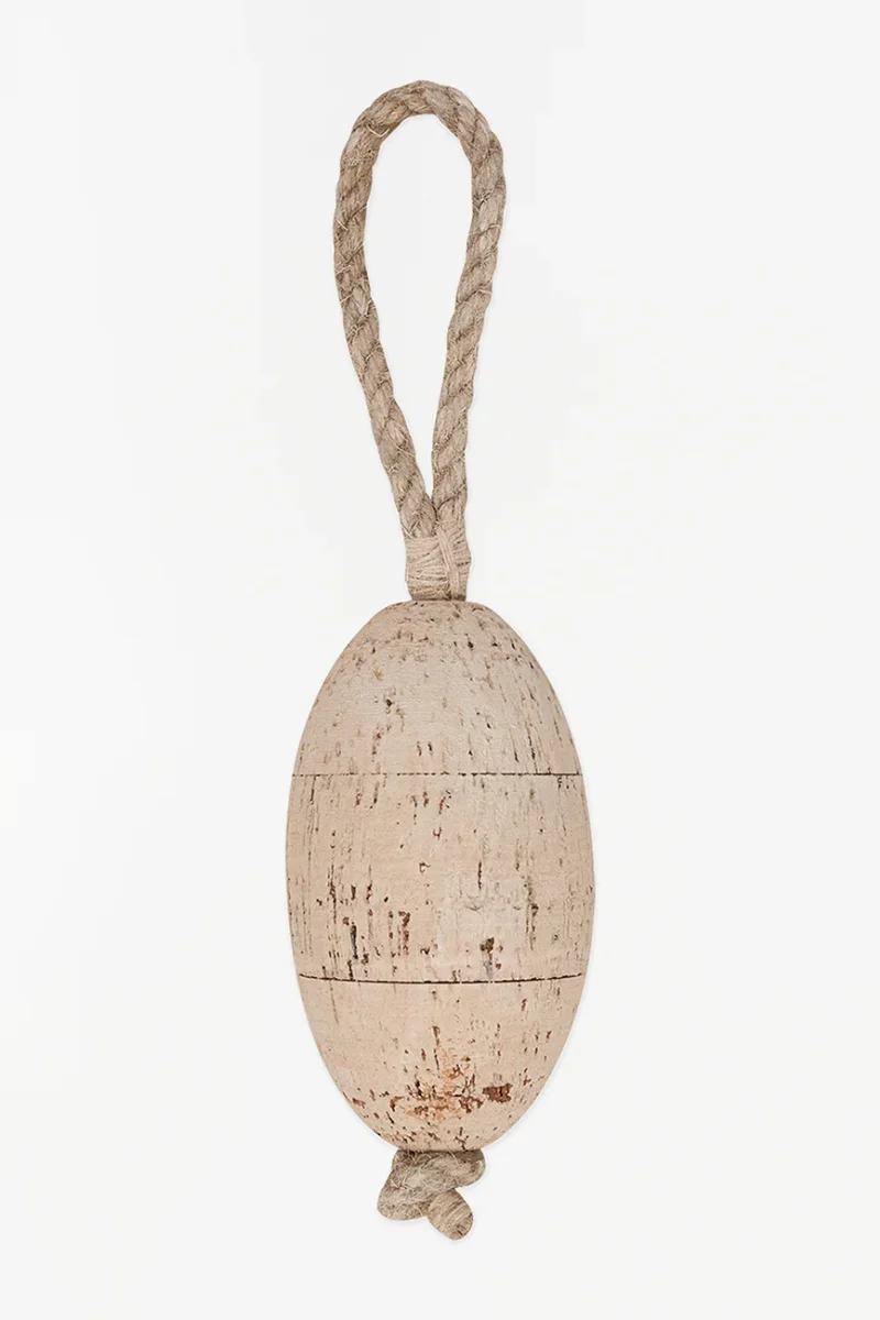 Boya de corcho pintada en blanco de forma que adquiere un aspecto envejecido verdaderamente evocador.