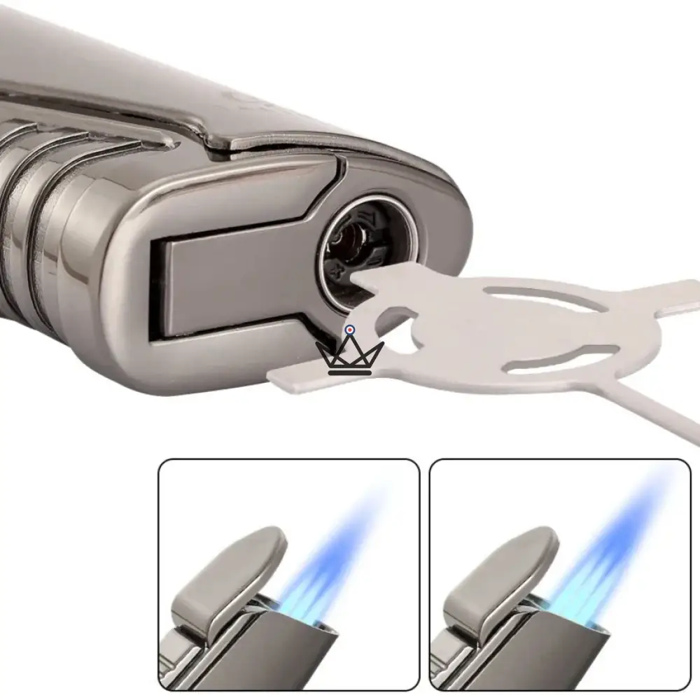 - Flamme Ajustable : Le réglage des lflammes vous permet d’adapter la puissance selon le diamètre de votre cigare, garantissant un allumage parfait sans compromettre les saveurs.
