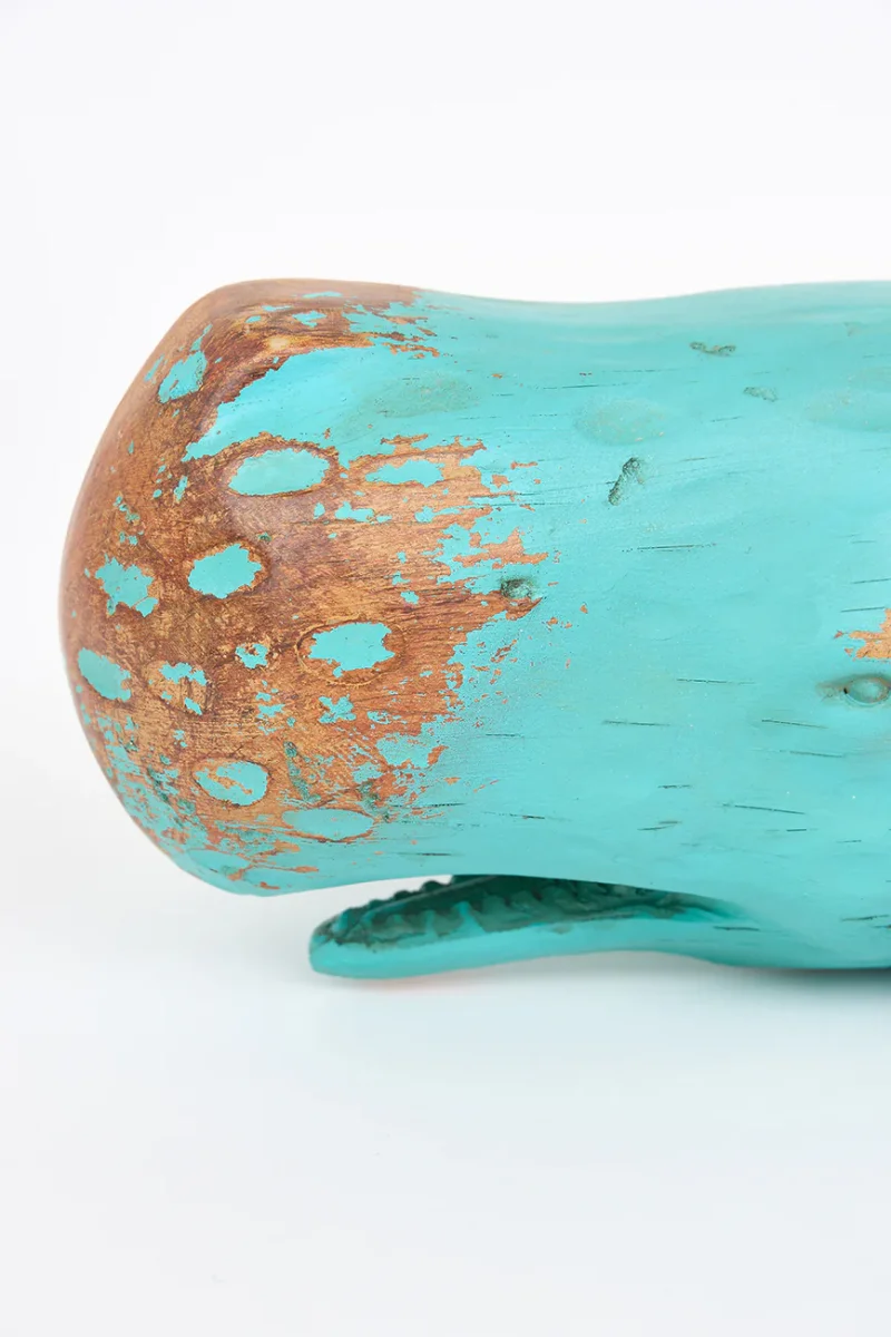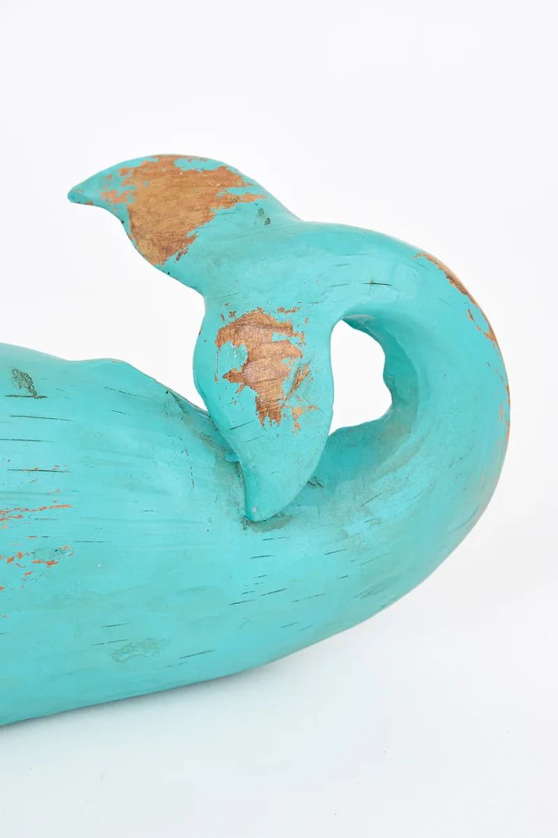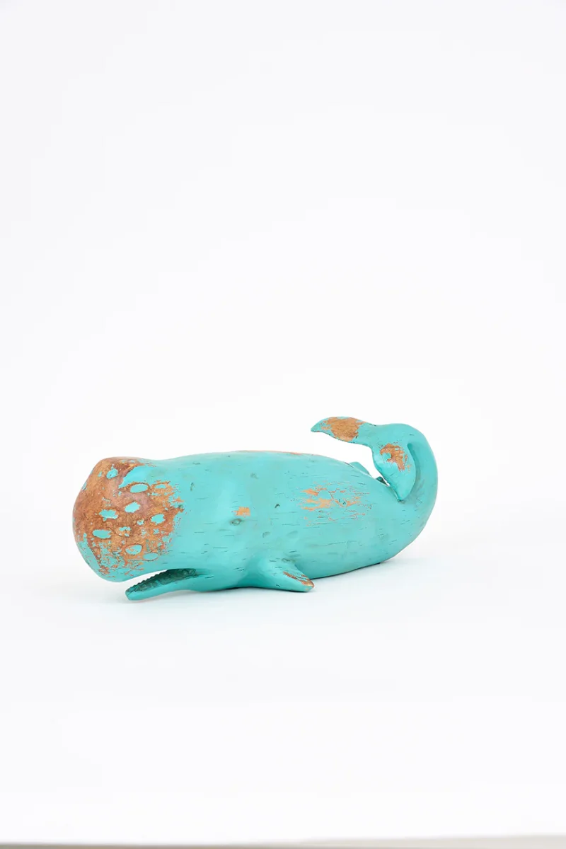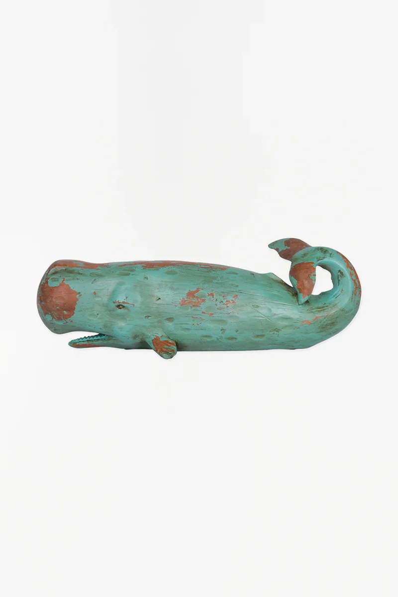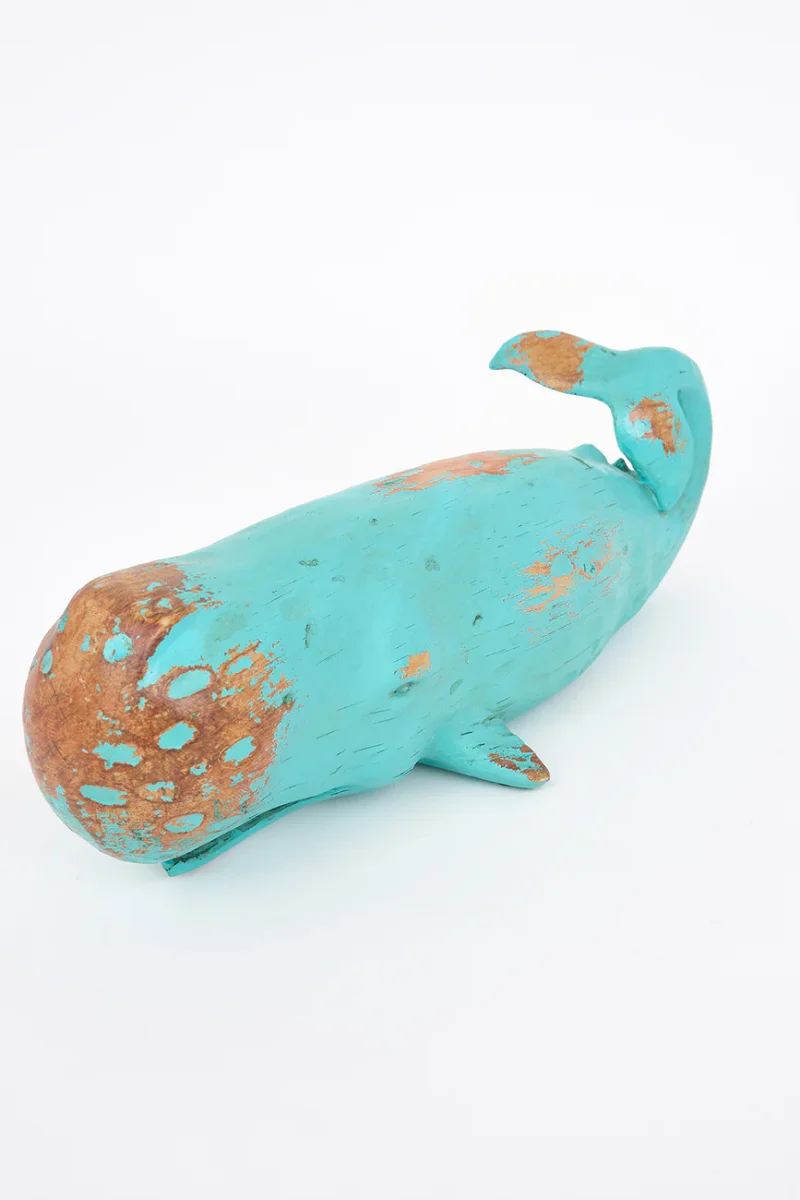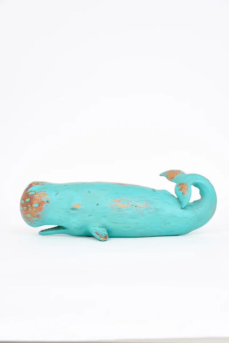 Cachalote o ballena grande hecha en resina. Tiene una terminación que simula a la madera envejecida y que dará un toque náutoico en el aparador de cualquier casa.