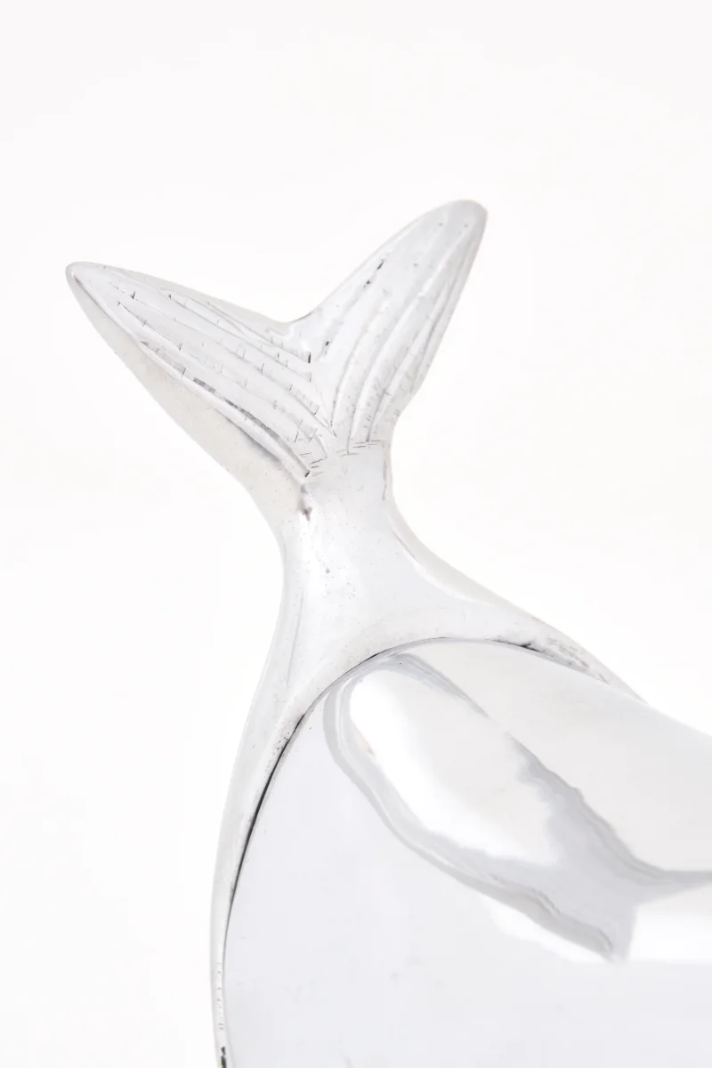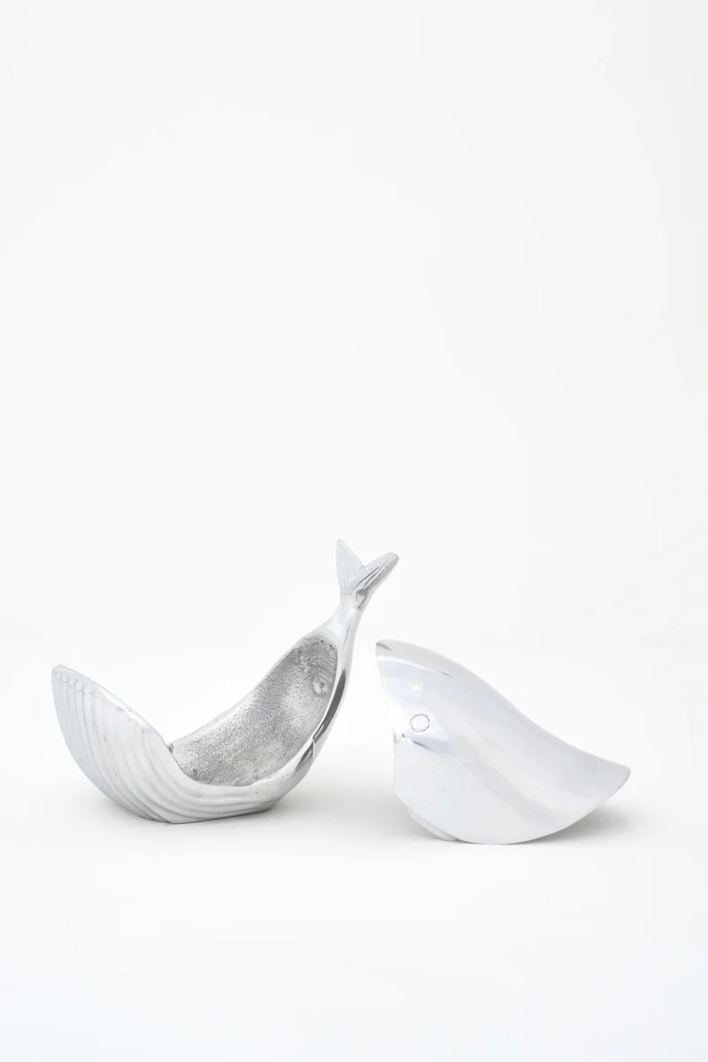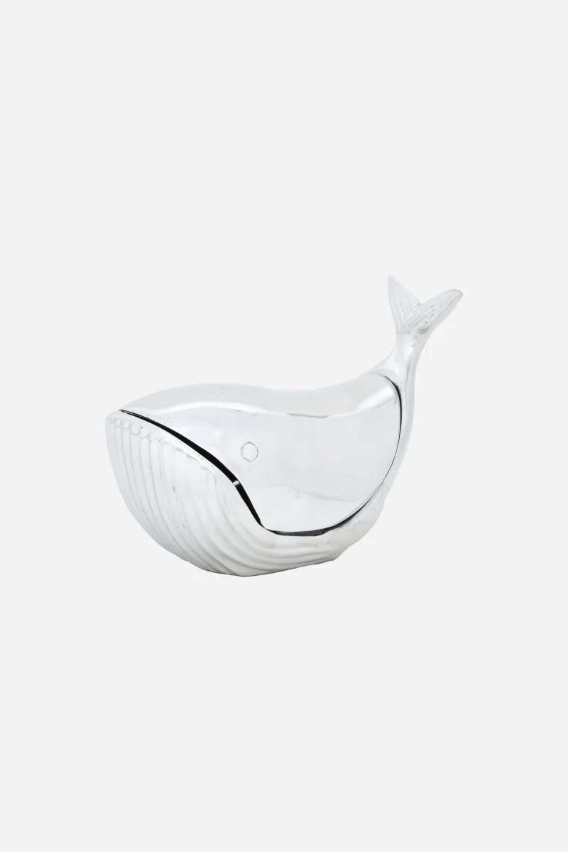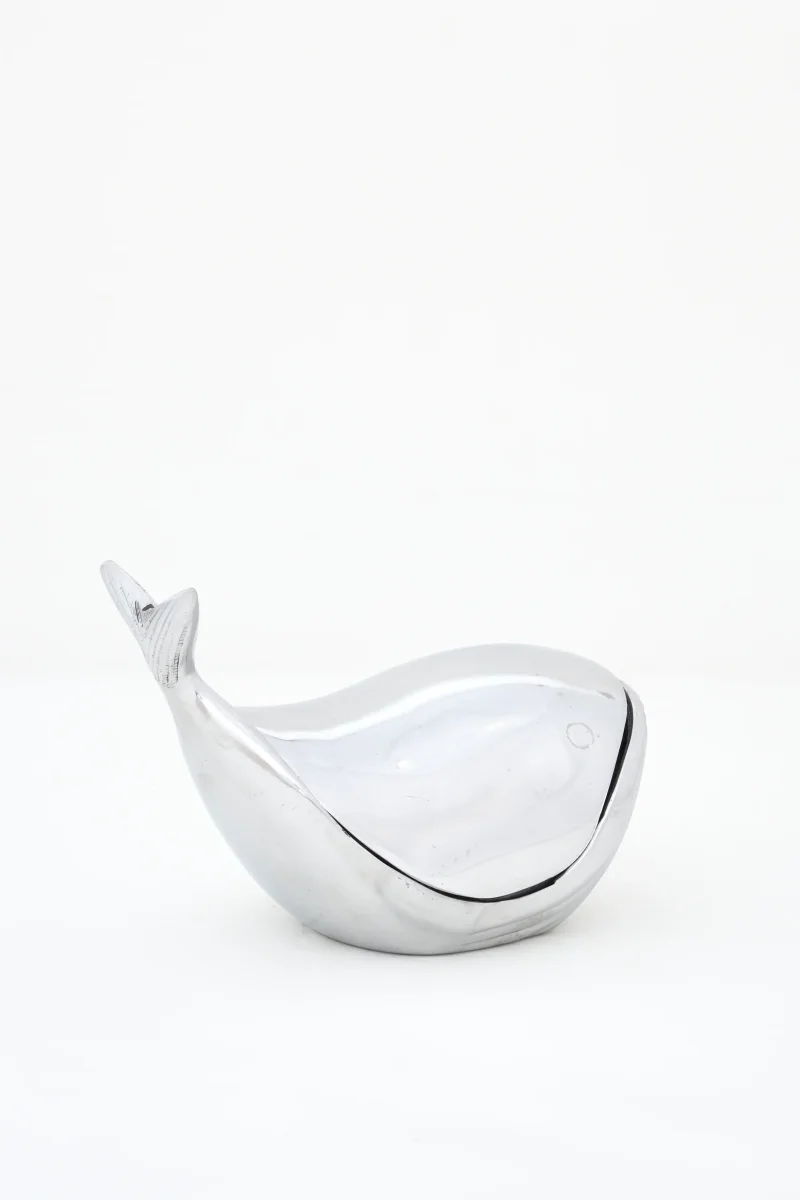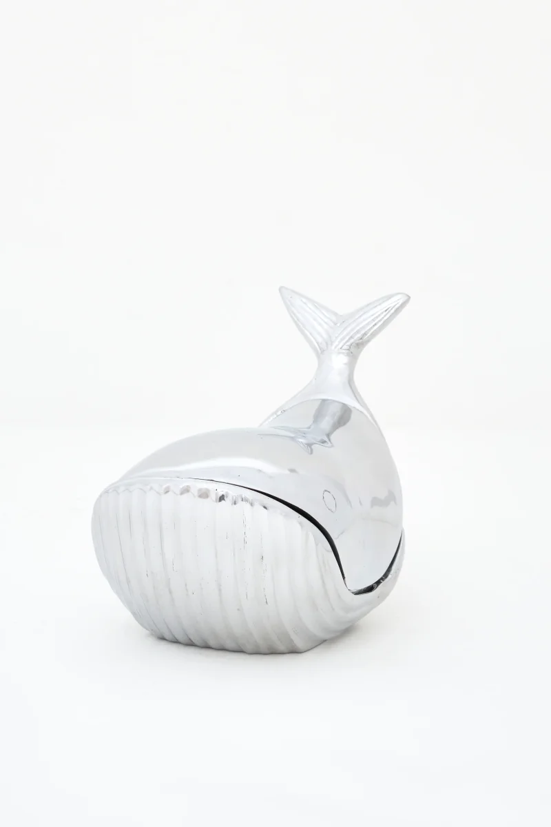 Caja decorativa de aluminio con forma de ballena y diseño de inspiración marinera. Una pieza funcional y decorativa pensada para guardar pequeños objetos