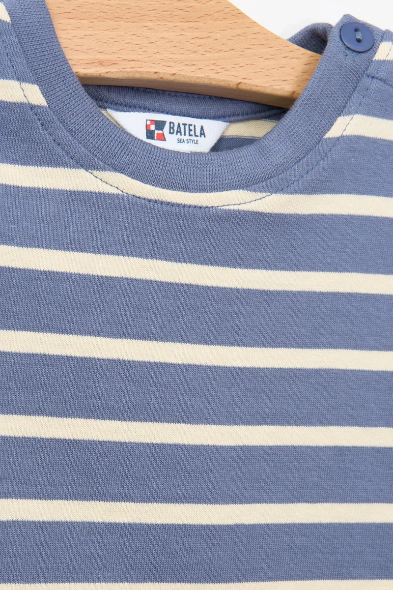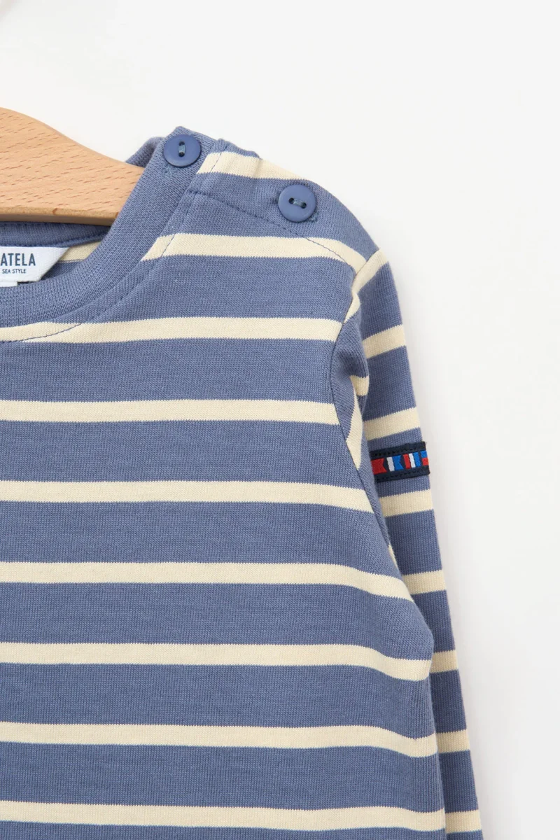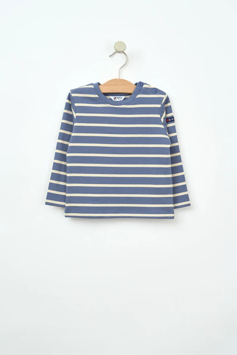 Incluye botones en el hombro para facilitar el cambio, un detalle práctico que también aporta un toque tradicional. El inconfundible estilo Batela se refleja en cada costura, combinando comodidad, funcionalidad y encanto náutico.