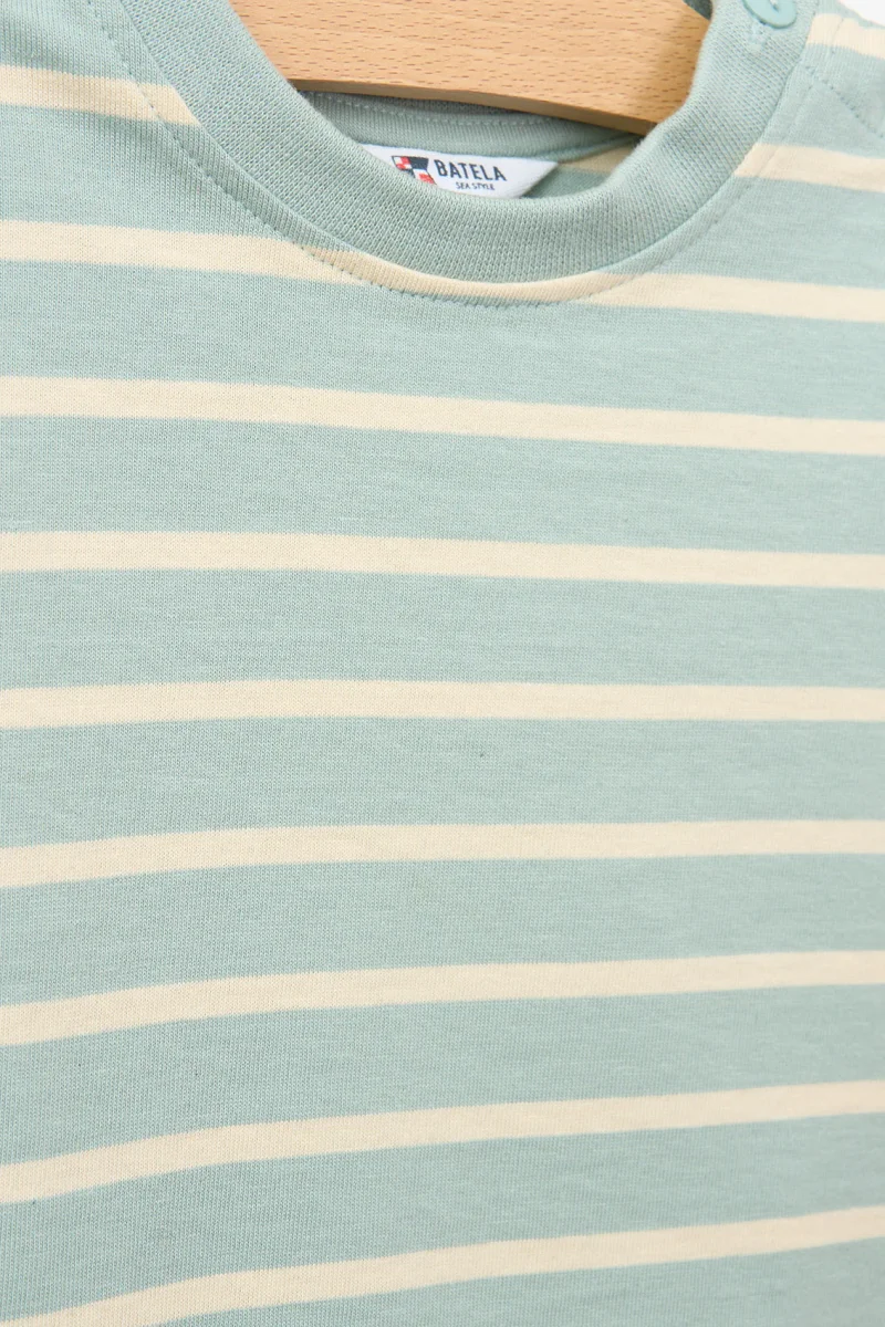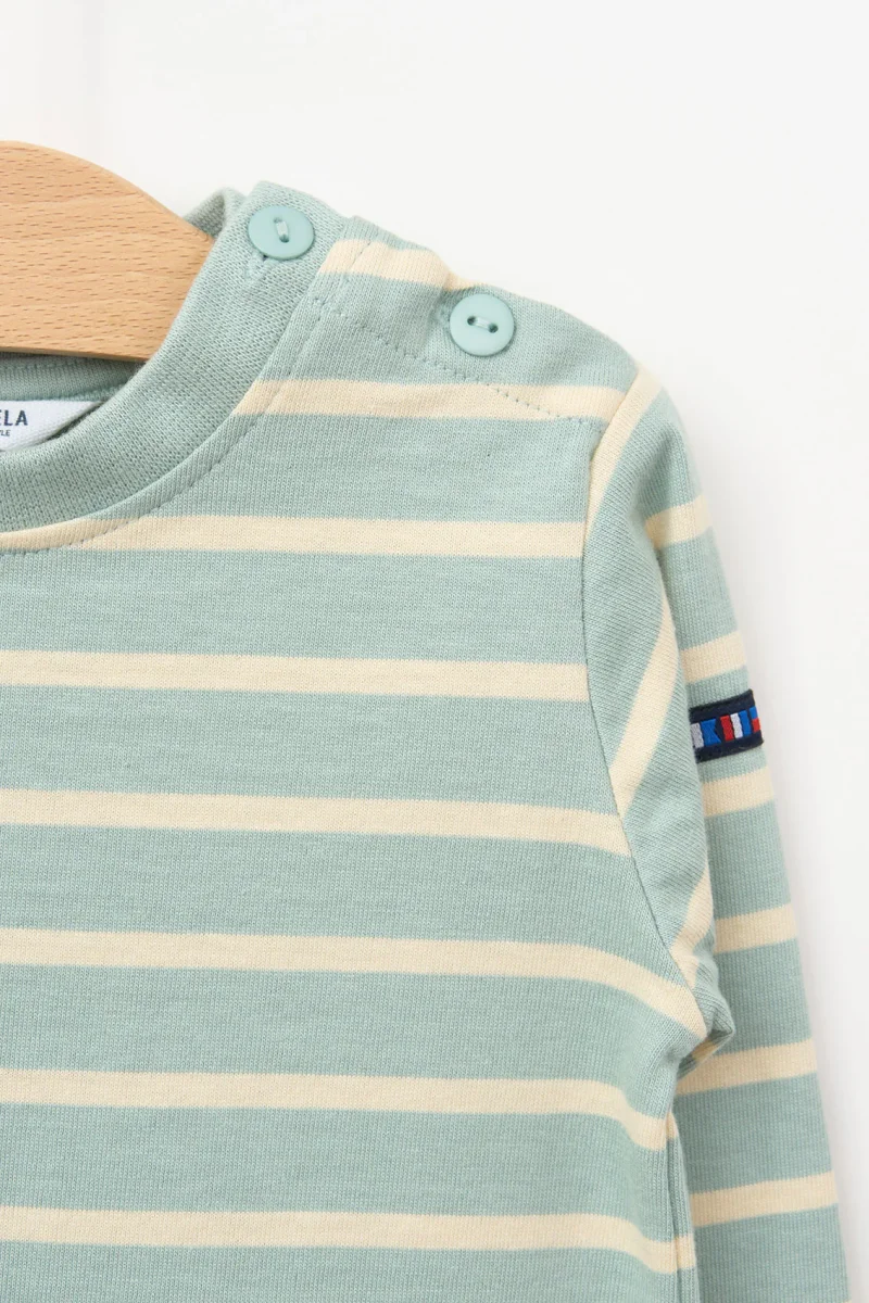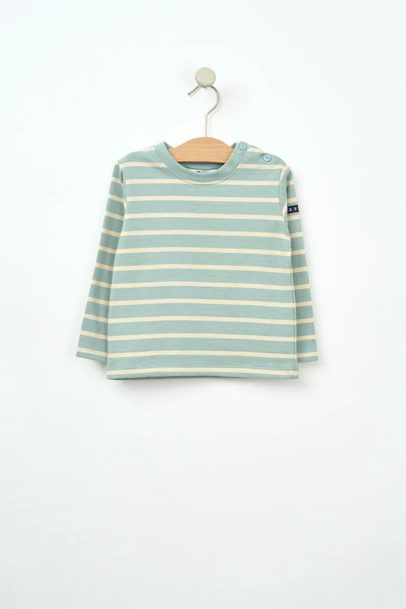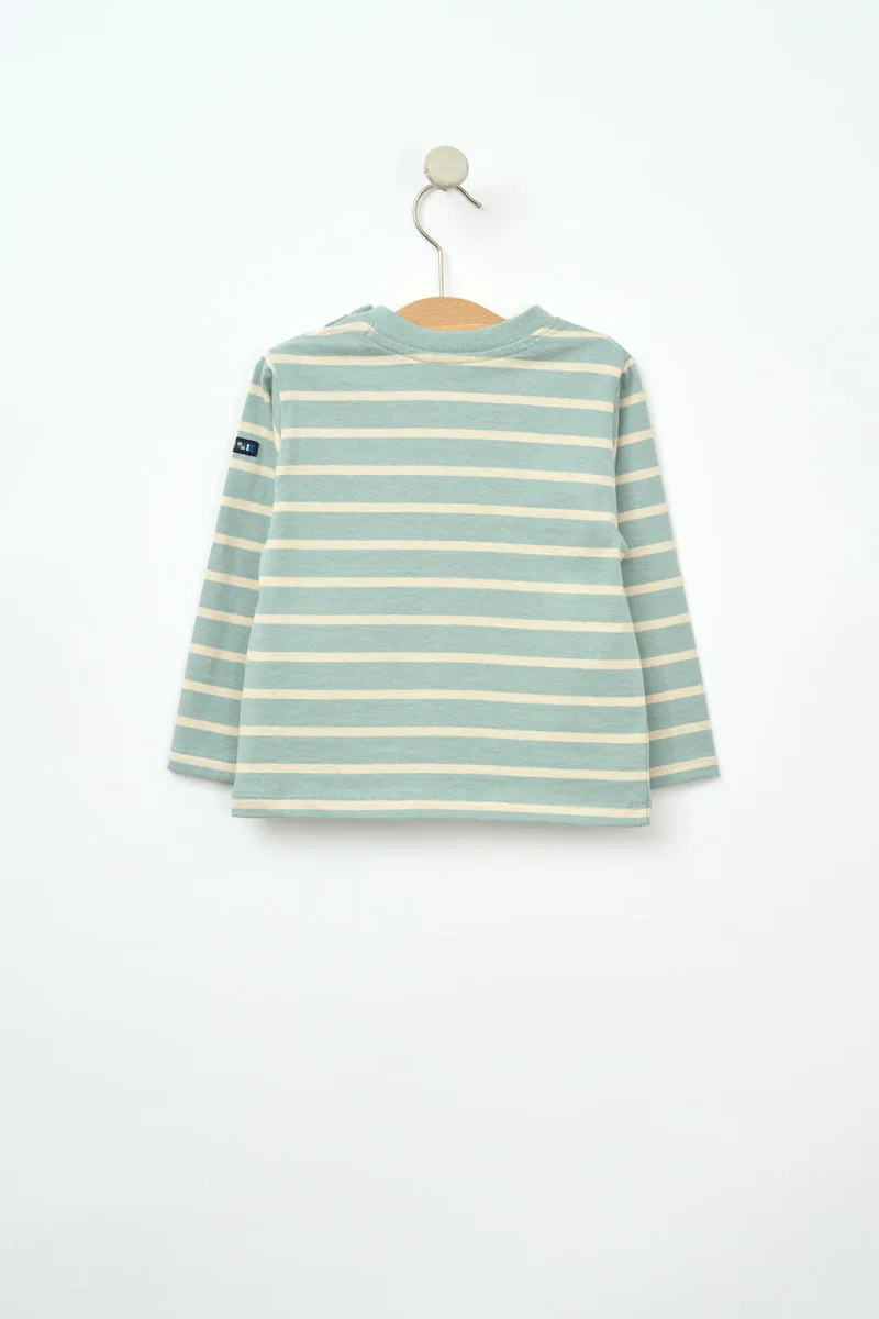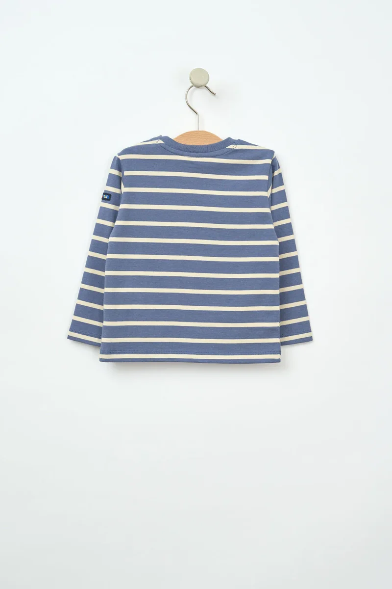Inspirada en el estilo marinero clásico, esta camiseta de manga larga para bebé presenta un diseño a rayas marineras que nunca pasa de moda. Está confeccionada en algodón 100%, suave y respetuoso con la piel delicada de los más pequeños.