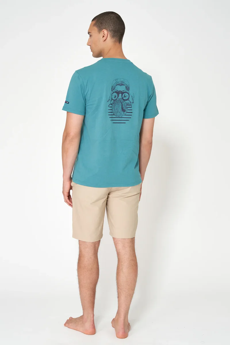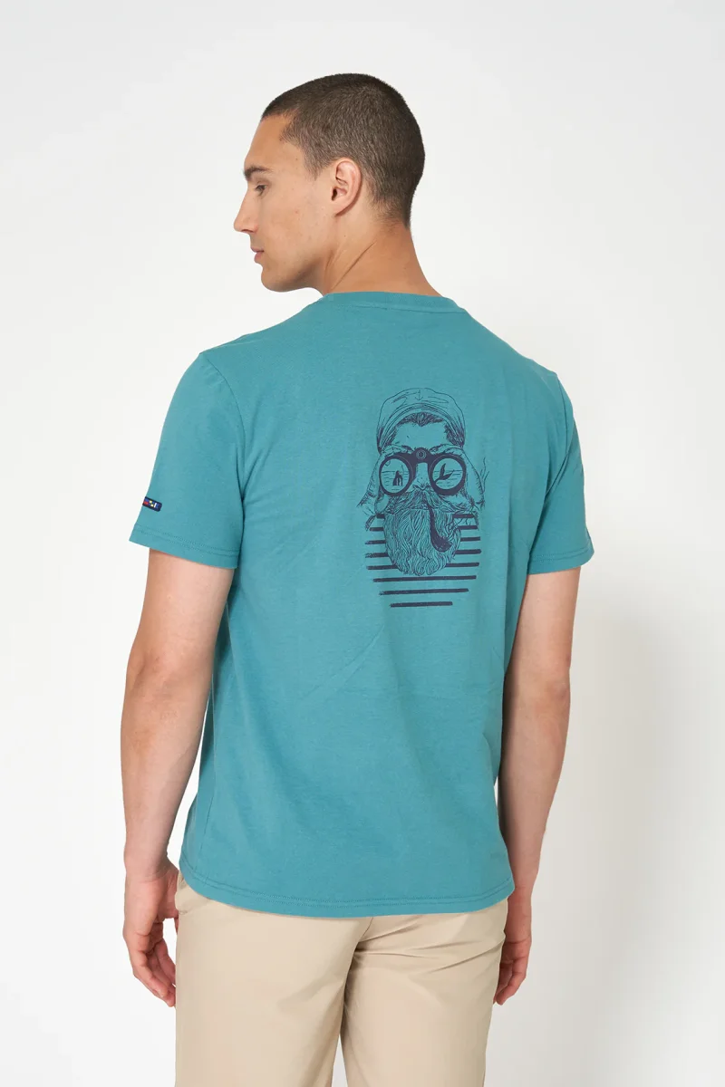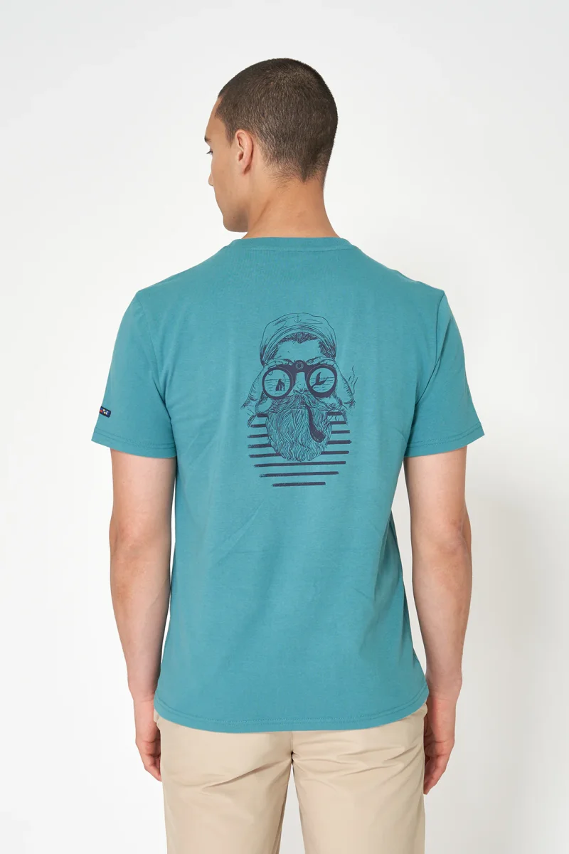 Camiseta confeccionada en algodón de 180 gramos certificado OEKO TEX Standard 100. Con un diseño limpio y cómodo para el uso diario. El logo frontal aporta un detalle reconocible que refuerza su carácter náutico, mientras que la ilustración de la espalda le aporta un toque distintivo y divertido.