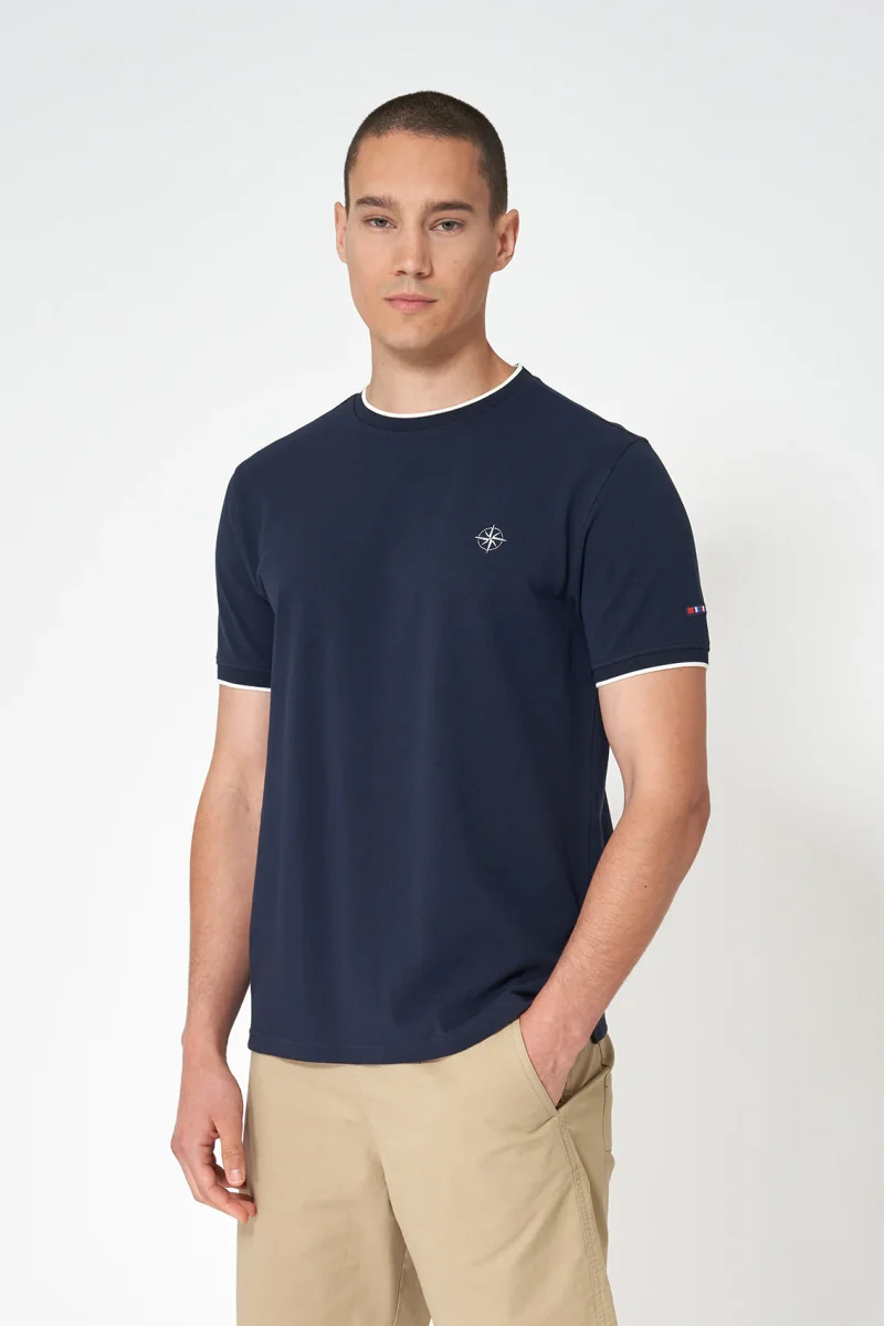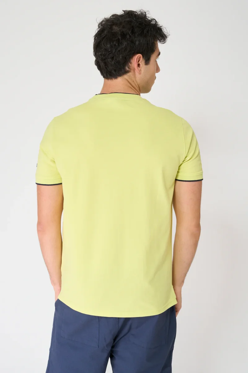 Esta camiseta con cuello redondo se ha confeccionado en tejido de piqué mezcla de algodón y poliéster certificado OEKO TEX Standard 100.