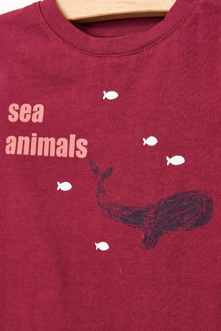 Camiseta de manga larga confeccionada en algodón 100% de 220 gramos. Lleva una serigrafía de una ballena rodeada de peces y el texto ‘Sea Animals’.