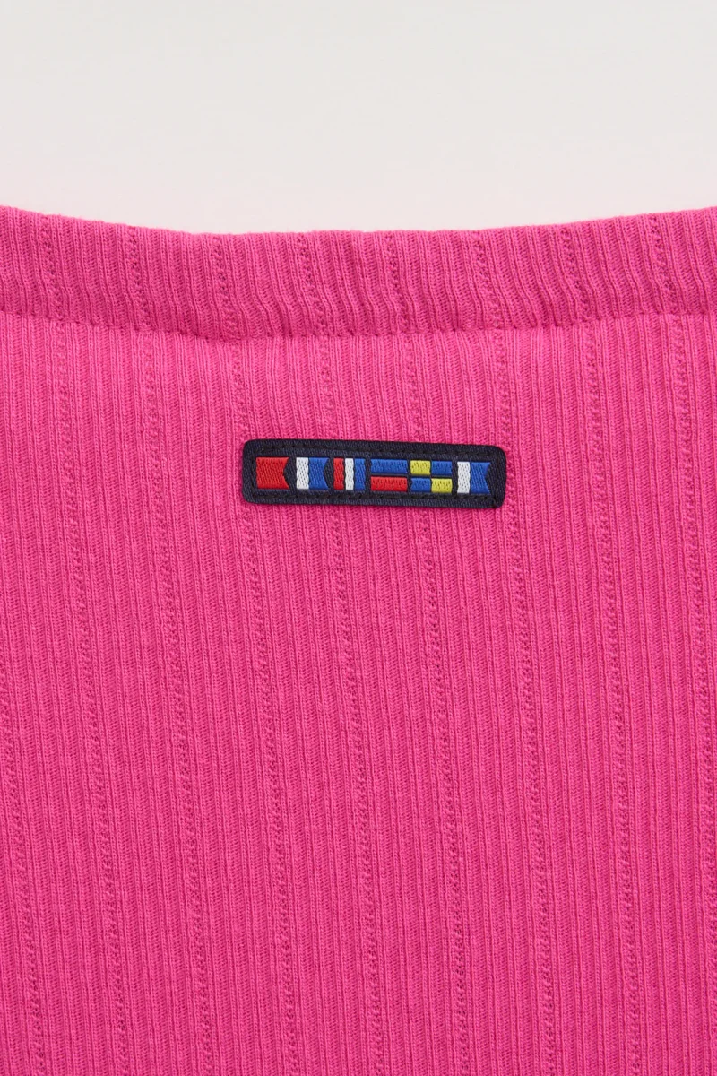 Esta camiseta de mujer está confeccionado en algodón pointelle, un tejido ligero con un delicado dibujo calado que aporta textura y frescura a la prenda. El algodón resulta agradable al tacto y muy cómodo para el uso diario.