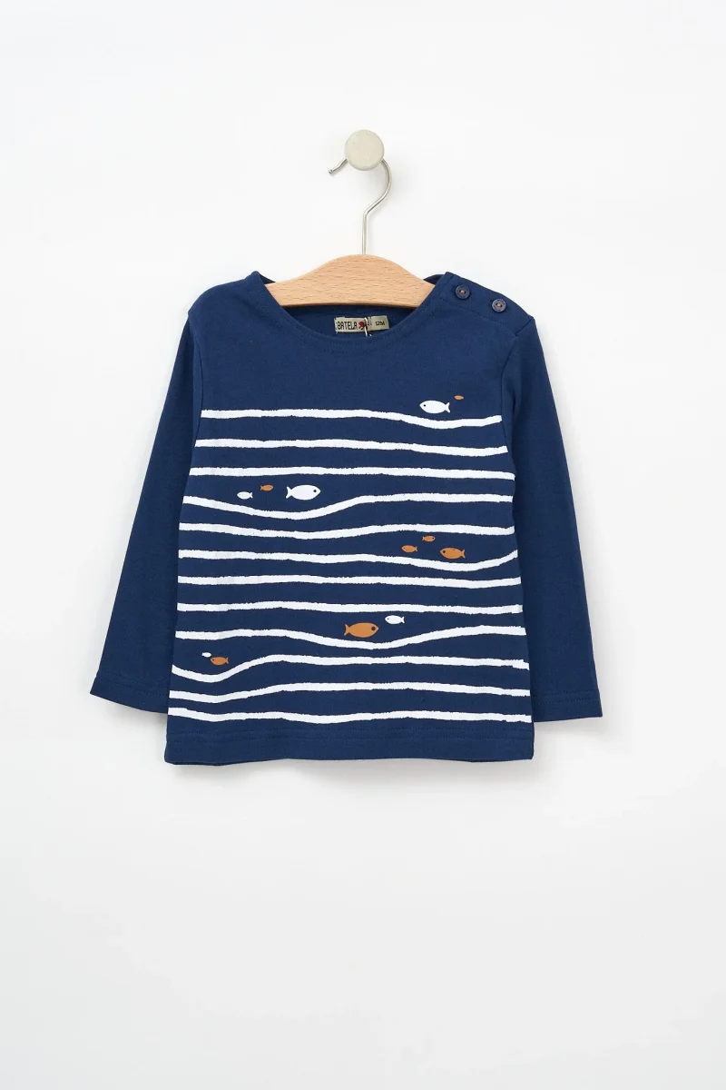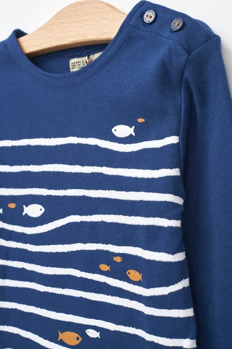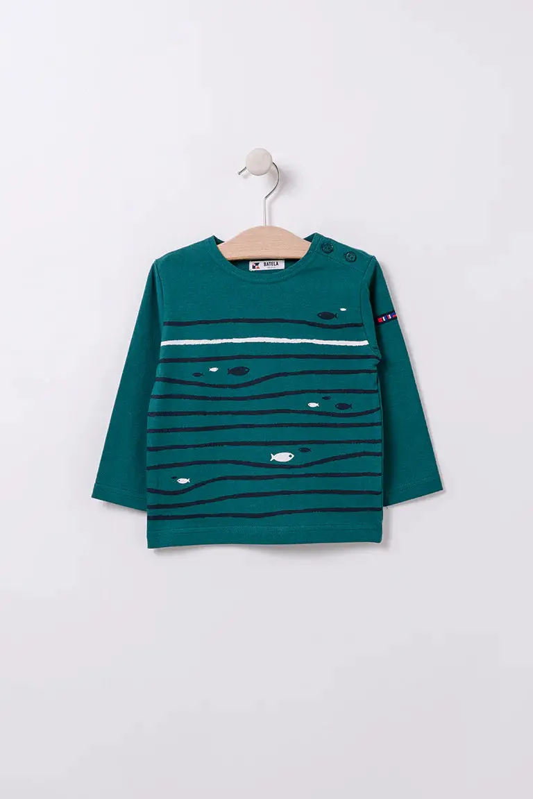 Camiseta manga larga con olas y peces