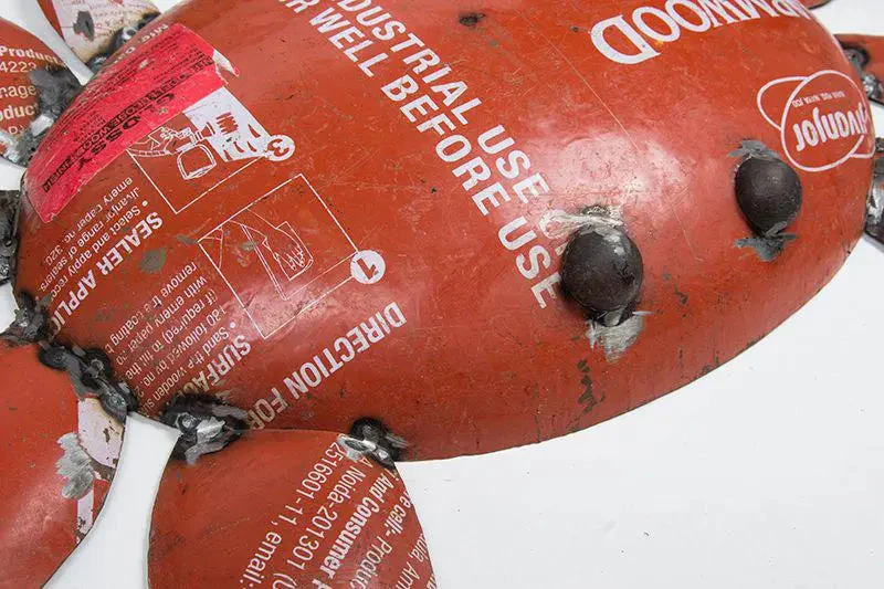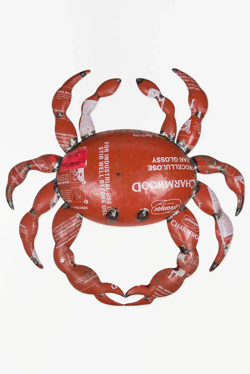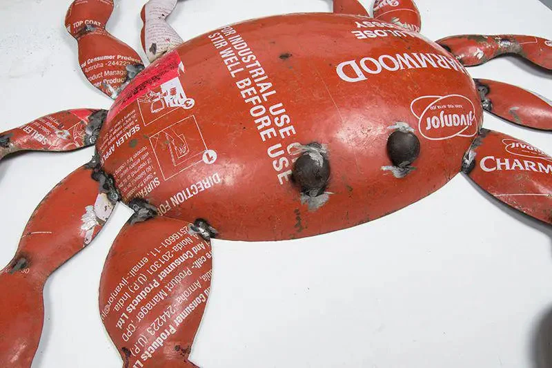 Cangrejo decoración náutica rojo de metal de bidones reciclados. Una pieza original para dotar de un estilo náutico único cualquier estancia del hogar.