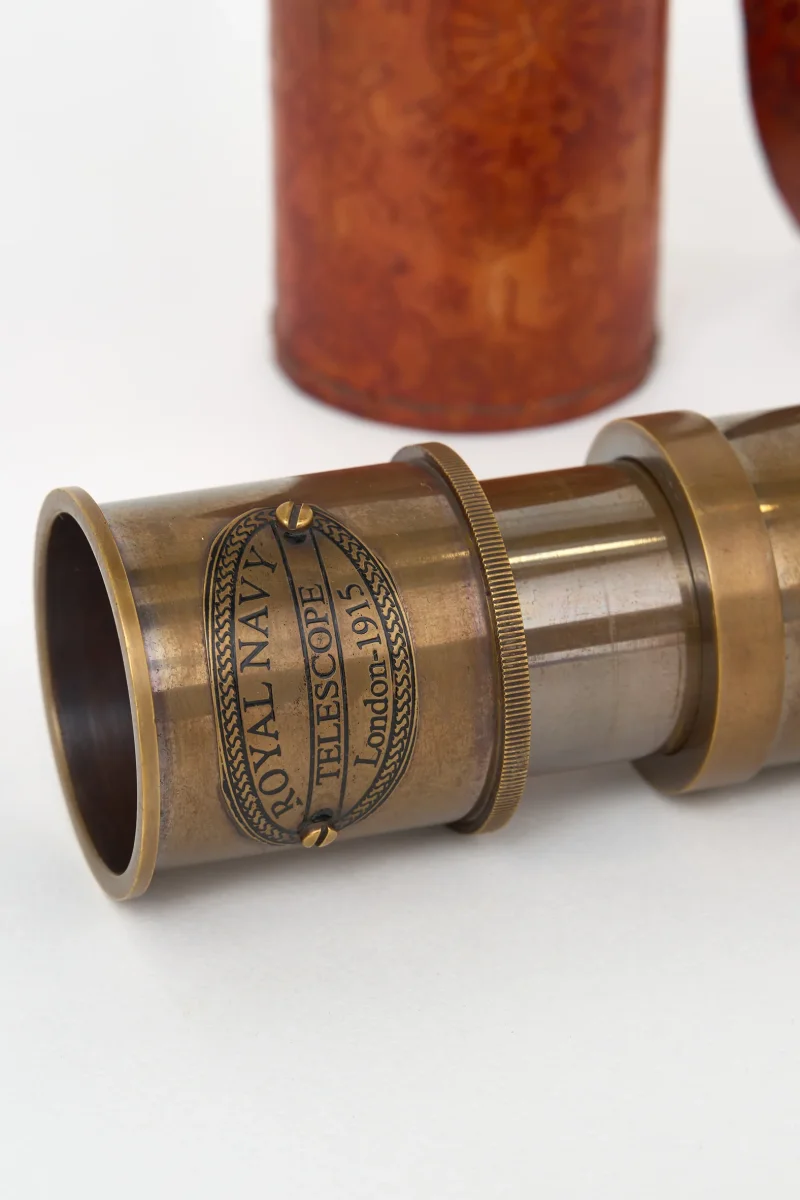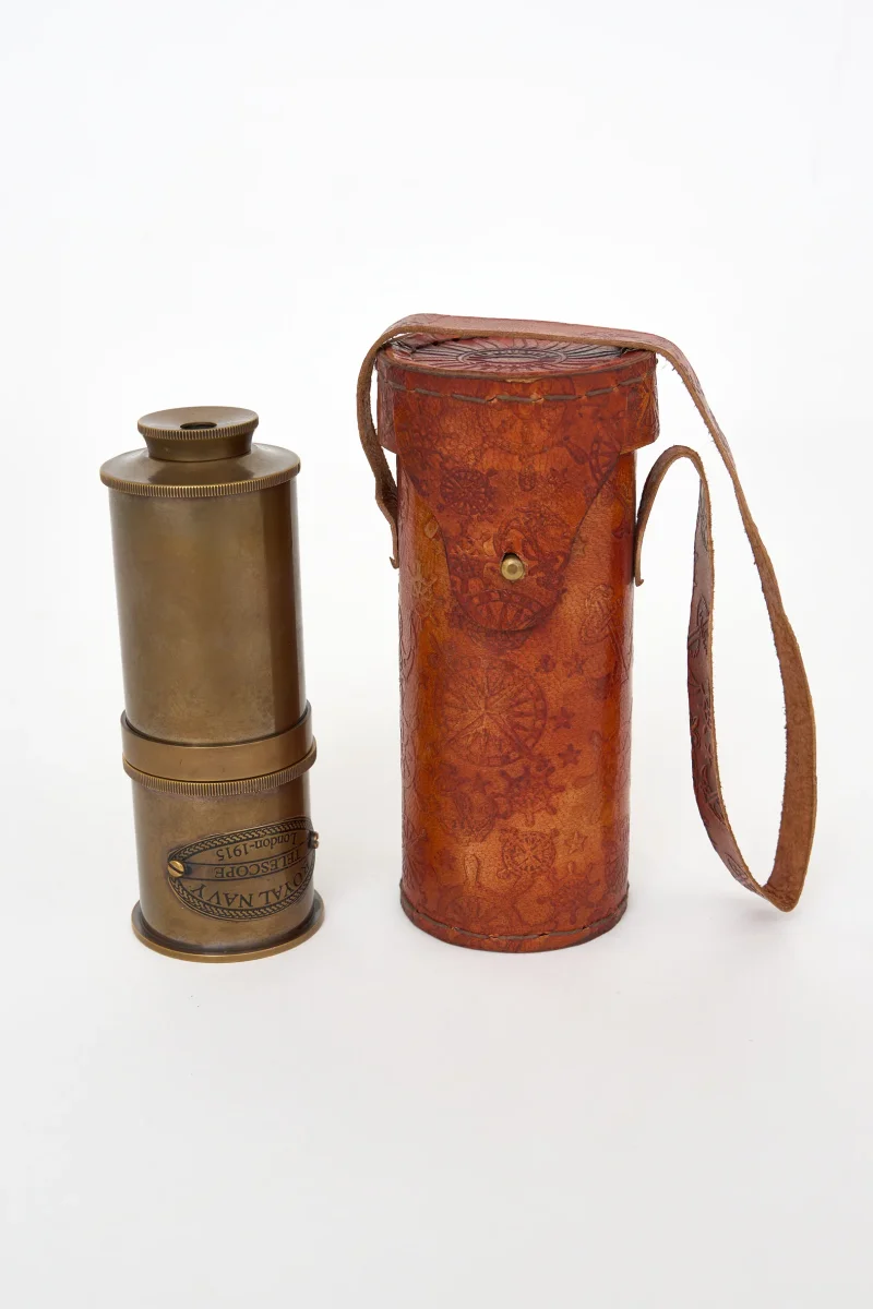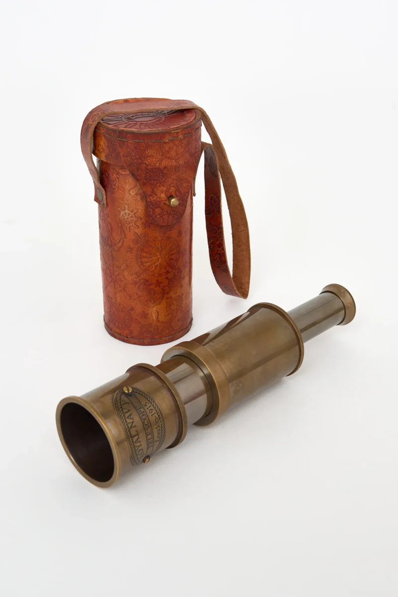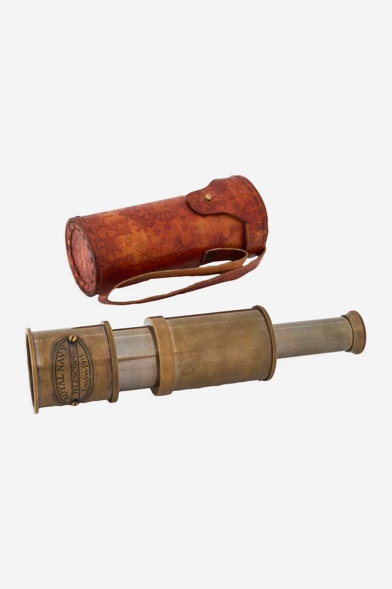 Catalejo decorativo de inspiración náutica pensado como pieza ornamental. Su diseño clásico aporta carácter y un guiño marinero a estanterías o escritorios