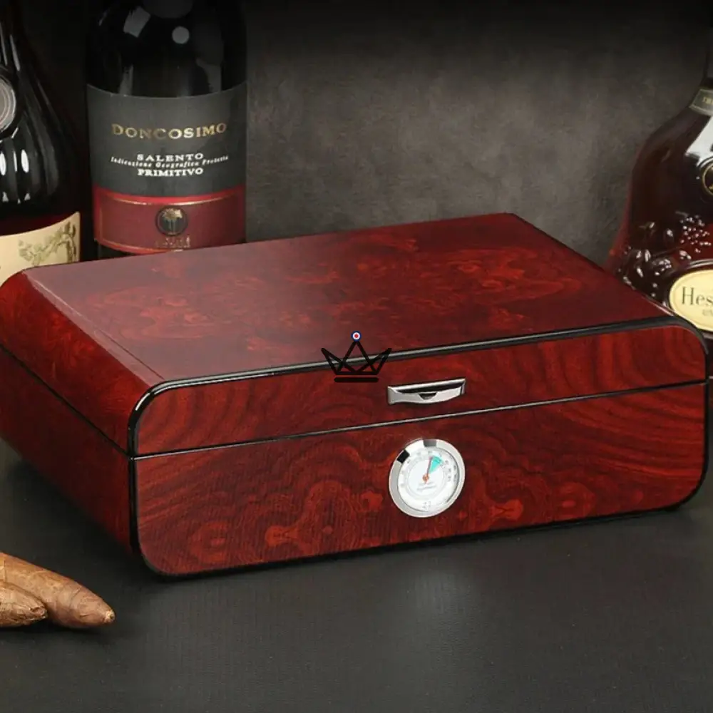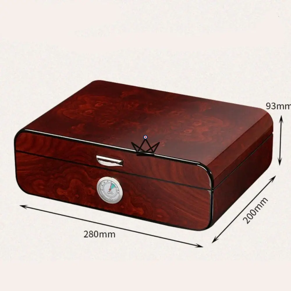 Pour assurer la conservation optimale, cette cave est équipée d’un hygromètre précis, permettant de surveiller et de maintenir facilement le niveau d’humidité idéal. Ce dispositif est indispensable pour garantir que chaque cigare reste dans un état impeccable, prêt à être dégusté à tout moment.
