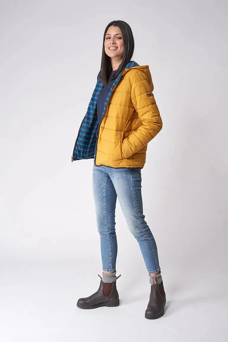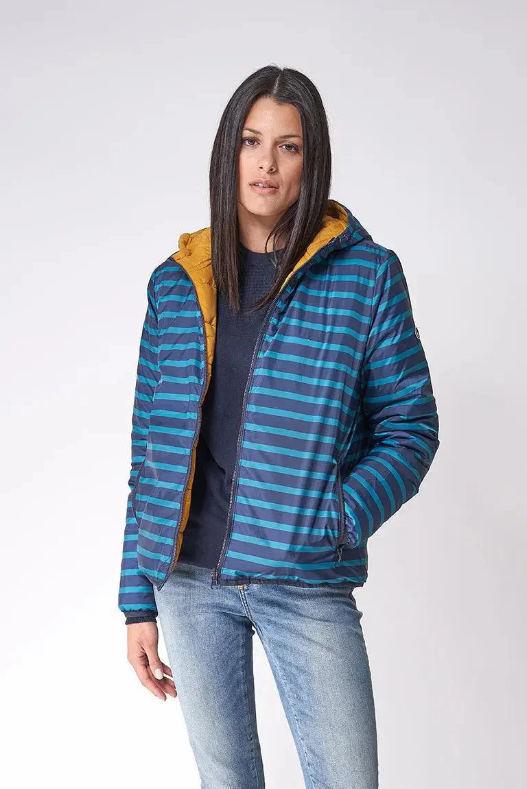 Cazadora reversible de Nylon. Acolchada con costuras horizontales tipo bomber.