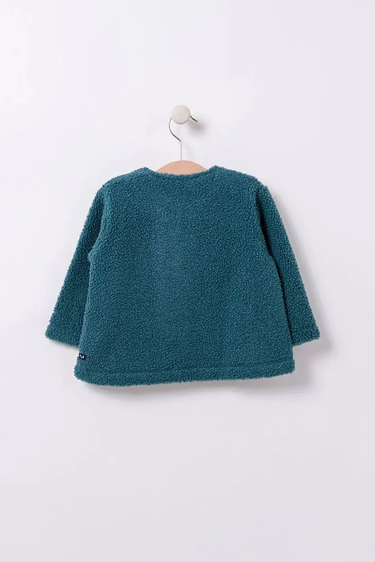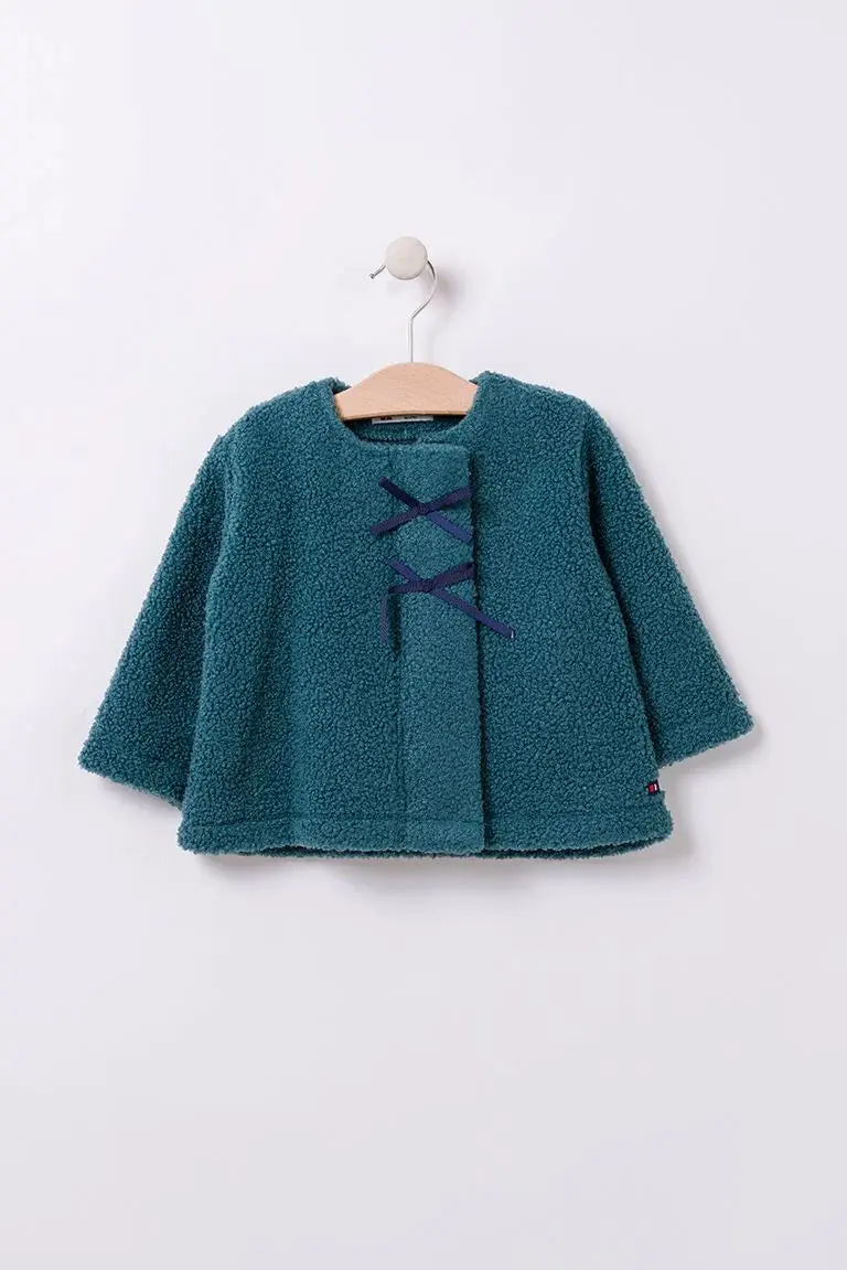 Chaqueta de tejido polar rizado con detalle de lazo.