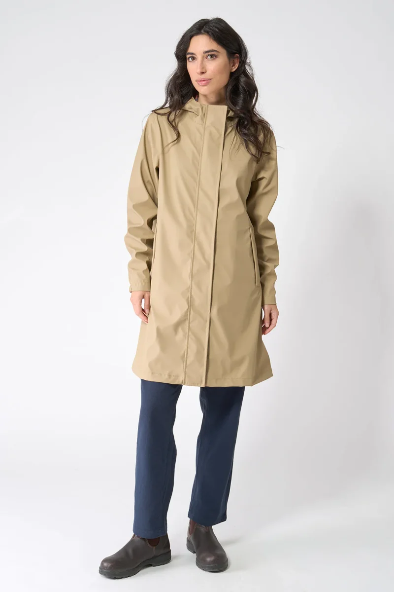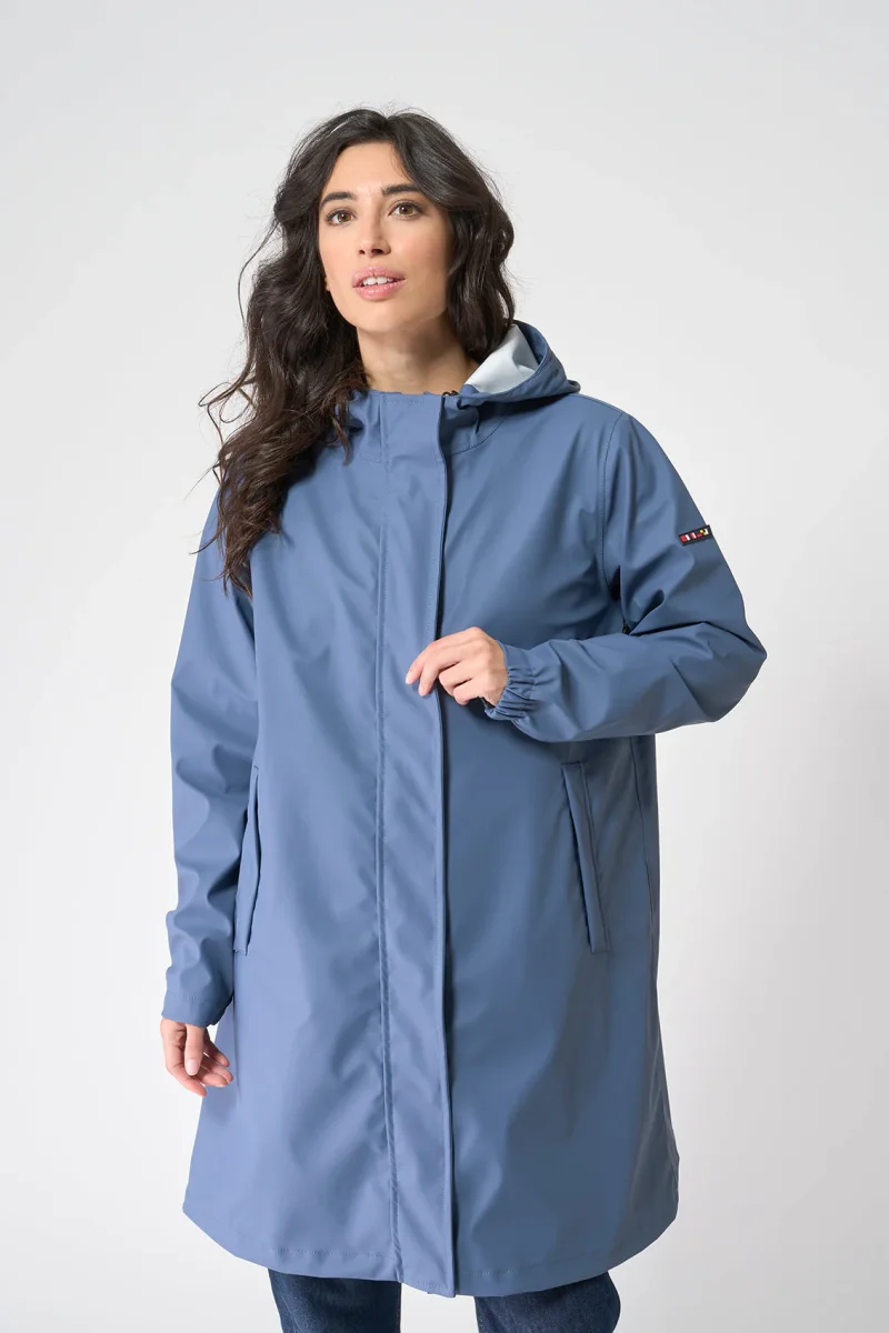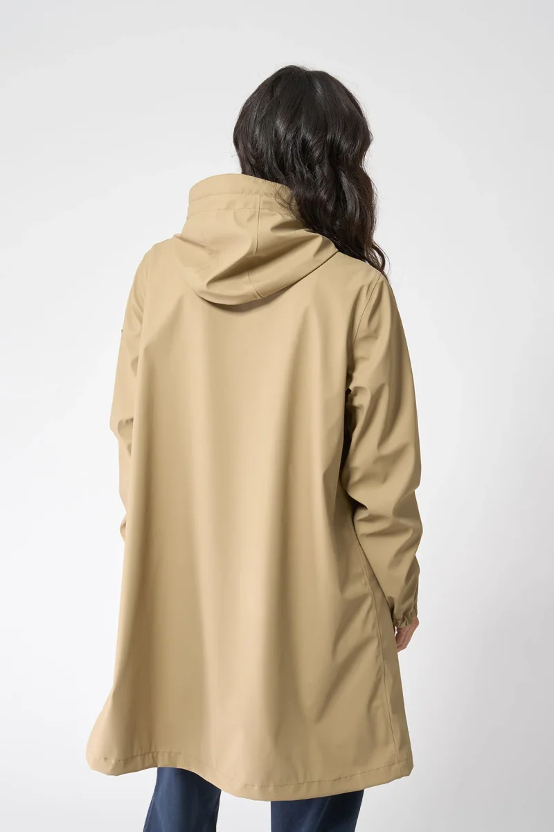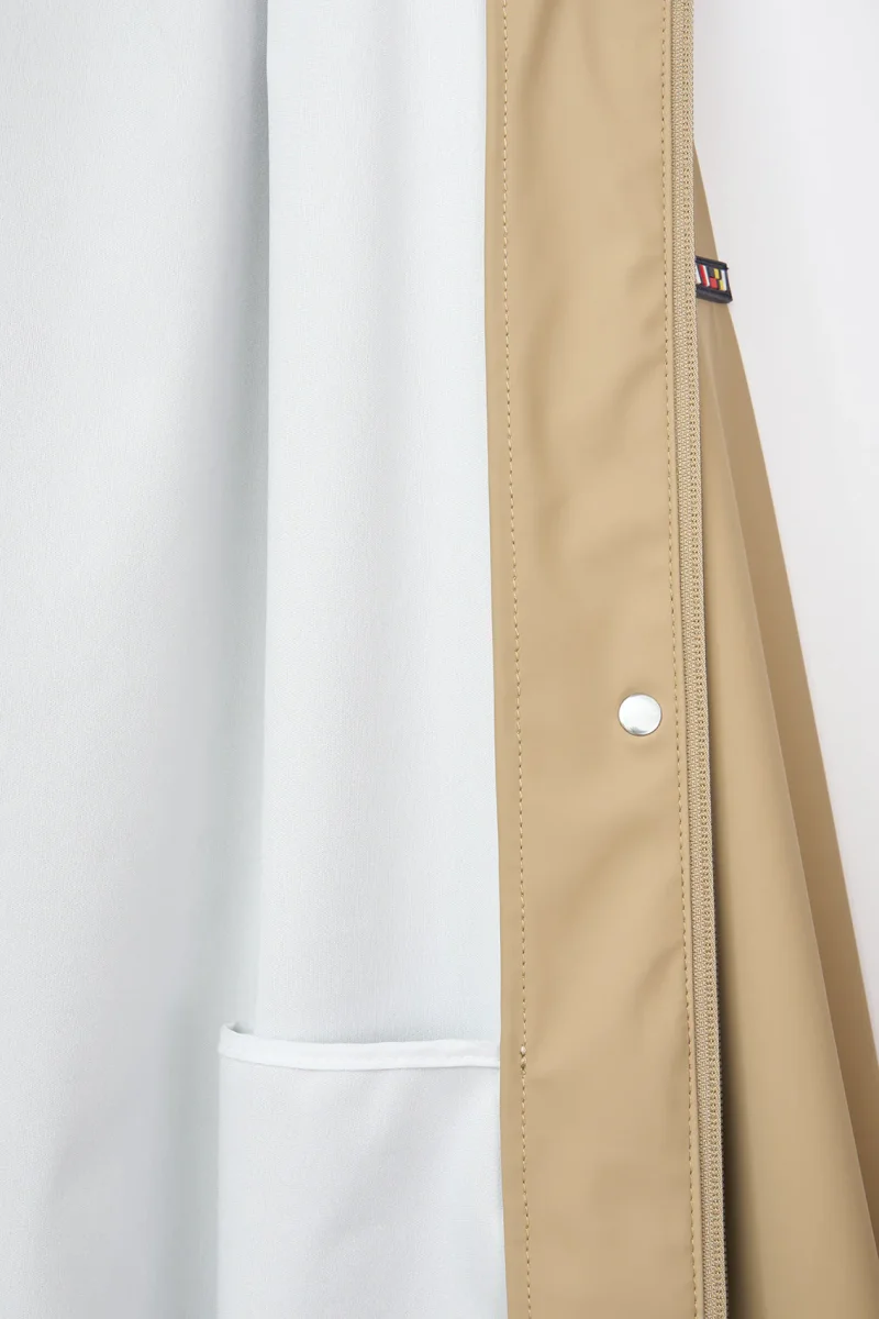 Chubasquero de entretiempo para mujer, confeccionado en tejido impermeable de poliuretano, ideal para protegerte de la lluvia y el viento durante los días templados de otoño. Diseño ligero sin forro interior, que permite una mayor transpirabilidad y facilidad de movimiento. Cuenta con cierre frontal de cremallera oculta bajo tapeta con corchetes, que refuerza la protección frente a la humedad. Incorpora una capucha ajustable, puños con acabado elástico y bolsillos laterales funcionales. Su acabado mate y minimalista lo convierte en una prenda versátil, perfecta tanto para looks urbanos como para escapadas al aire libre. Waterproof. La modelo mide 1,72m y lleva una talla 38.