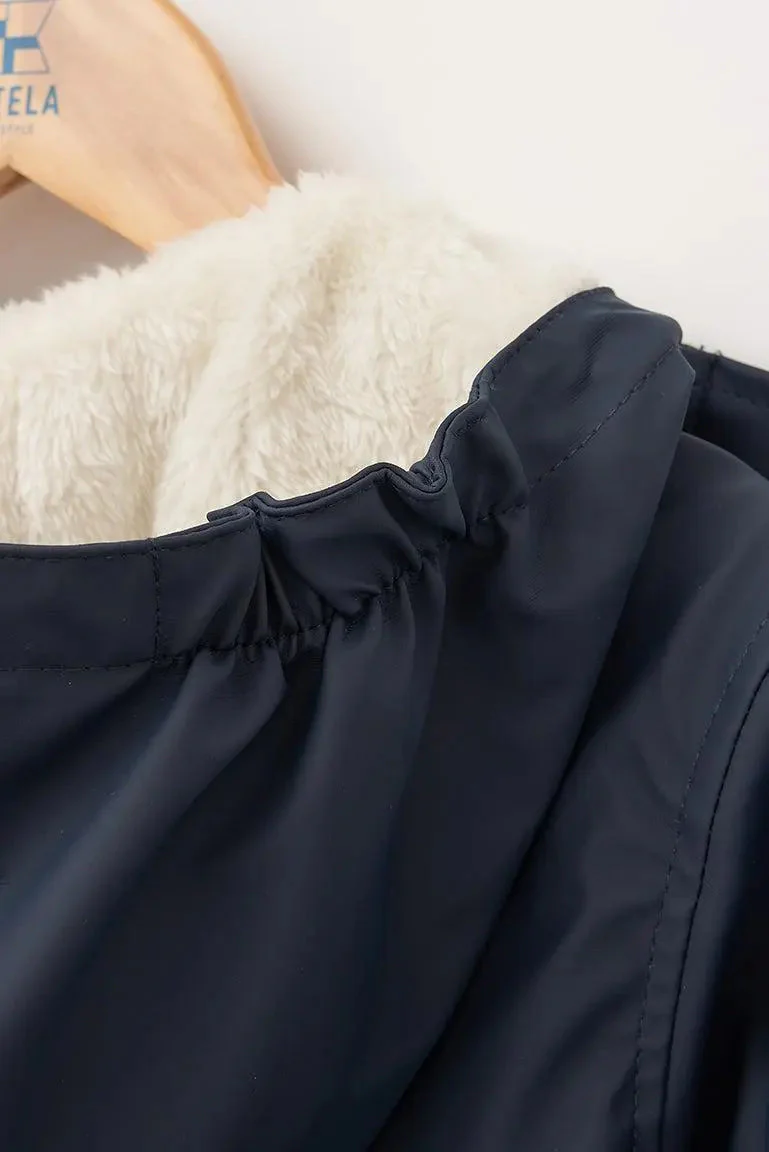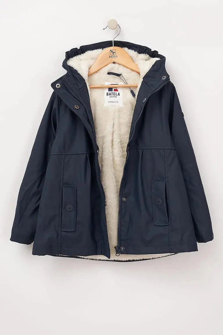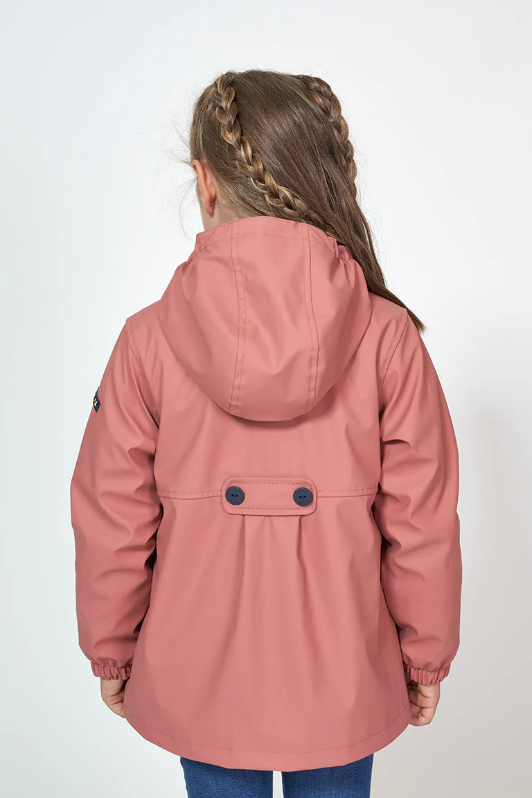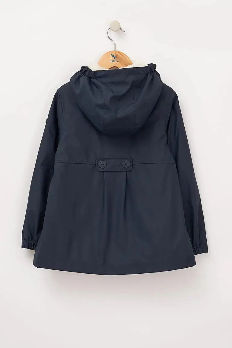 Chubasquero para niña con el exterior de poliuretano y con el interior de forro polar de pelo largo. Cómodo y ligero para los días más húmedos.